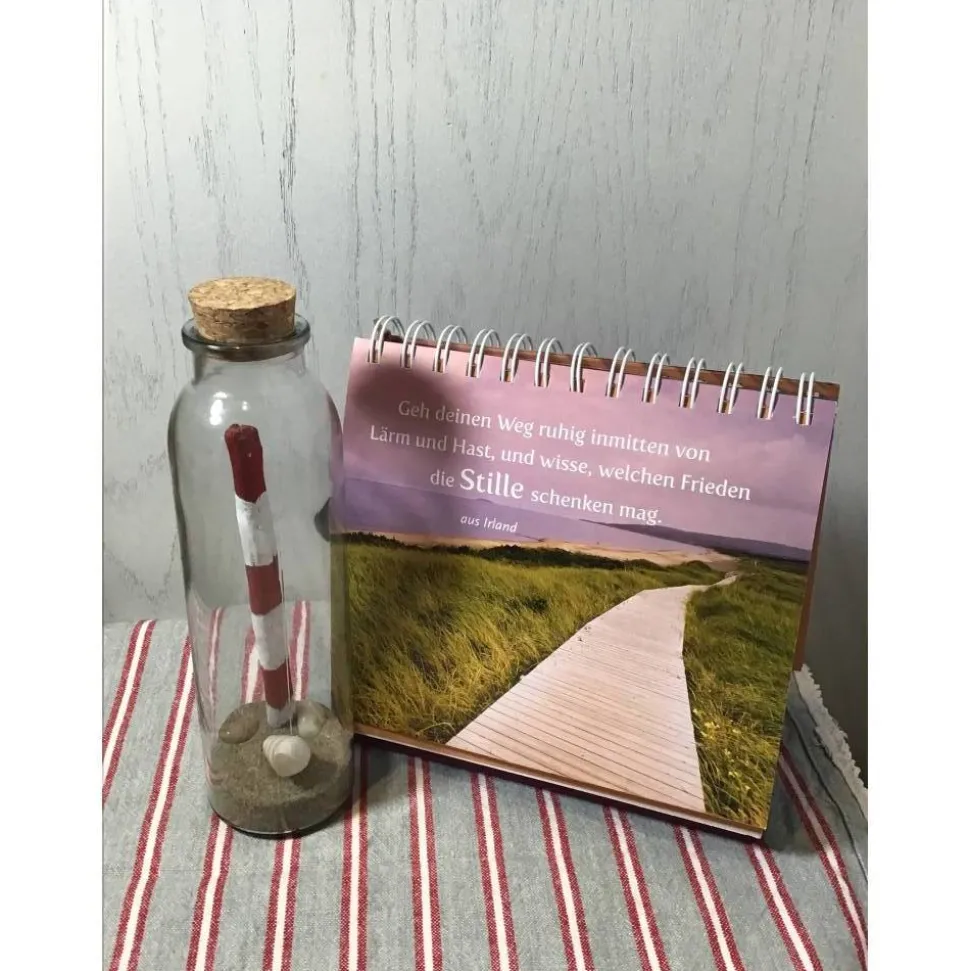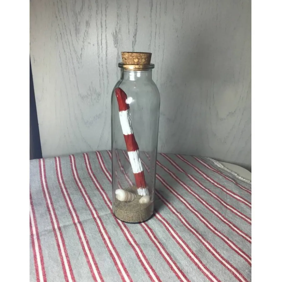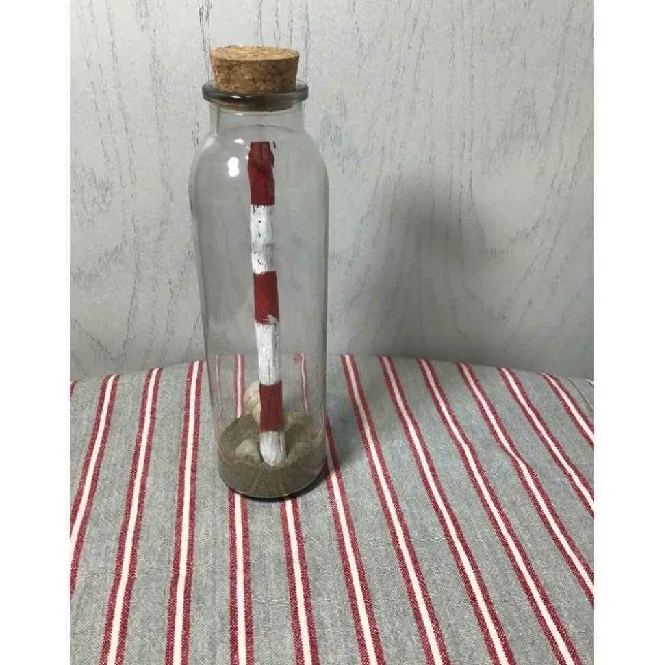 Ein Treibholz Stück vom Bodensee, italienischer Sand und zwei Kieselsteine machen diese Flasche zu einer maritimen Deko!