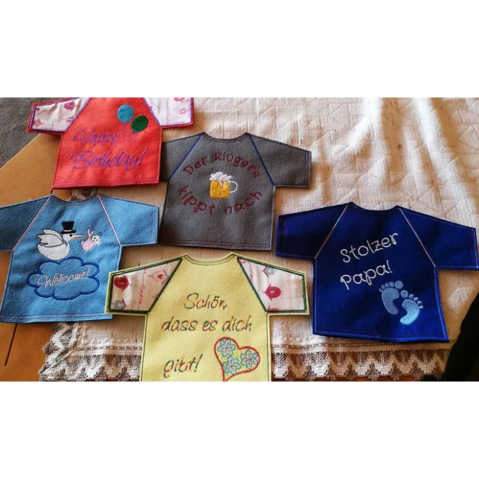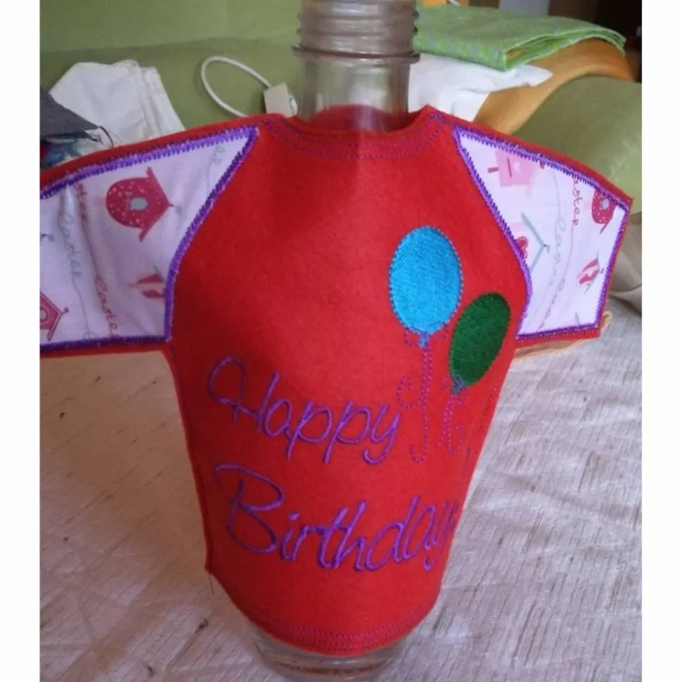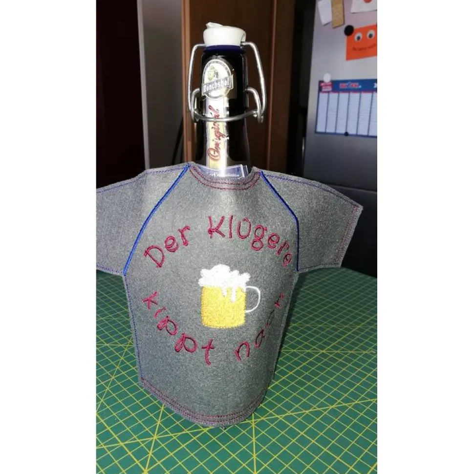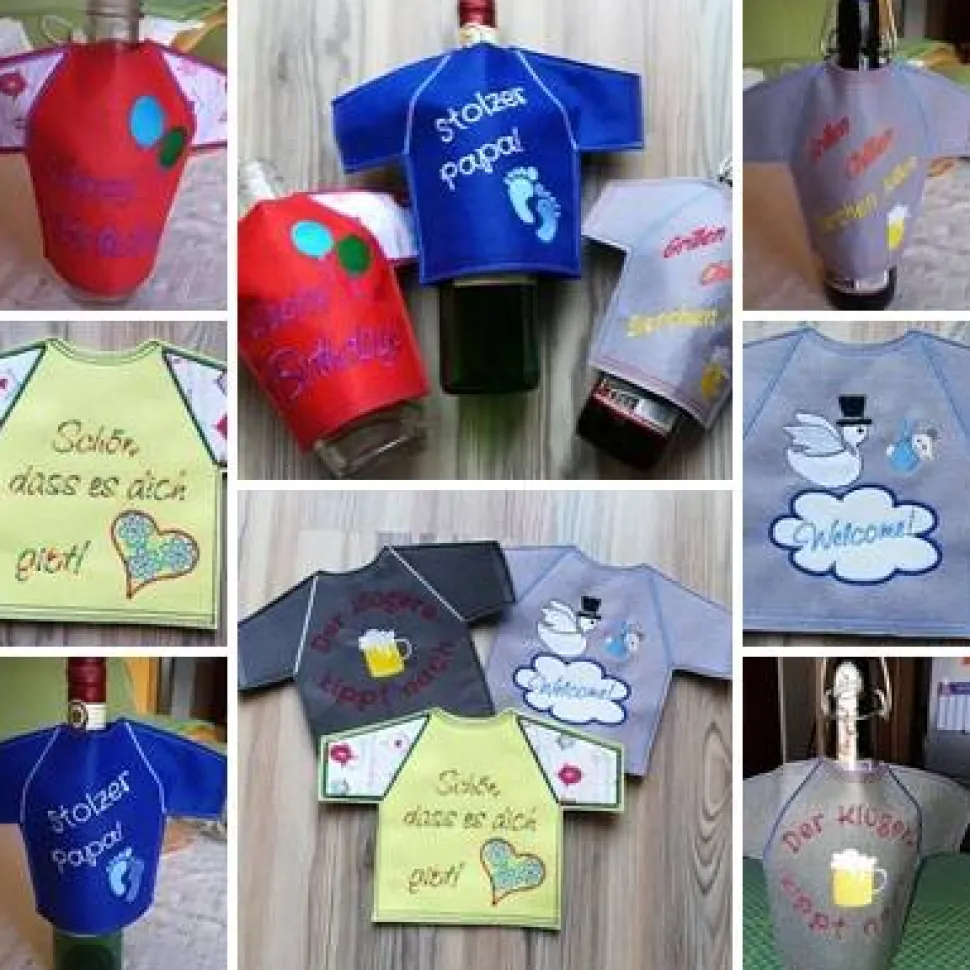 Ein T-Shirt für die Flasche mit einem lustigen Spruch oder einem Namen oder einfach Danke oder…oder…oder…