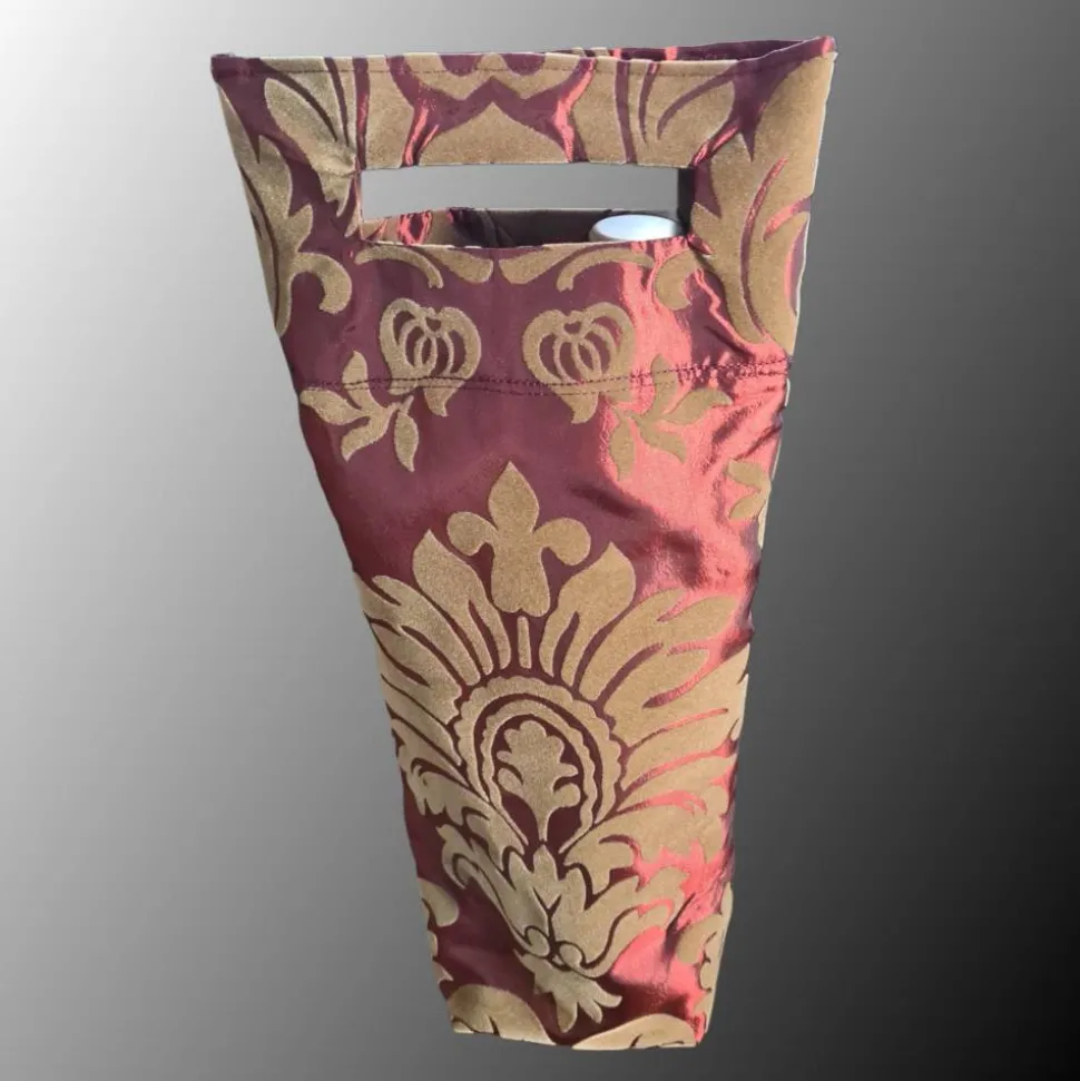 Diese hübsche Flaschentasche habe ich aus einem ausgedienten Vorhang genäht.