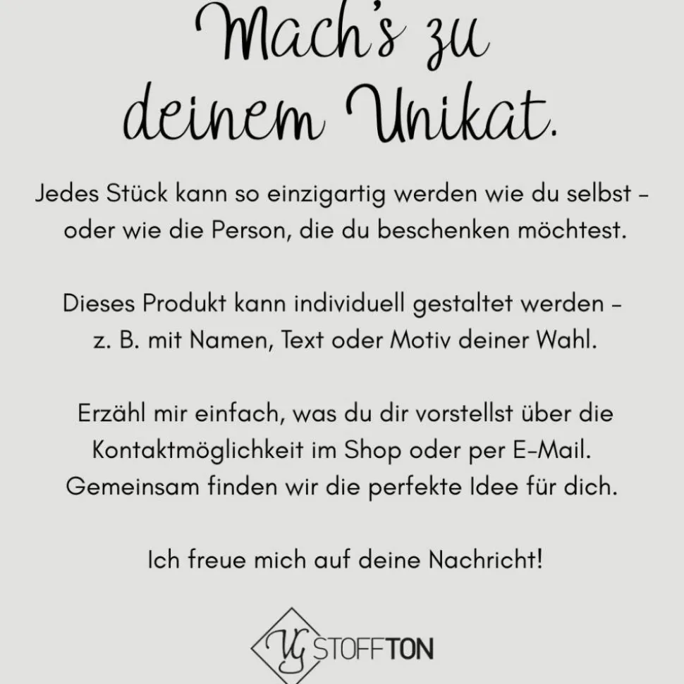 Die Produkte werden von VG STOFFTON / Vanessa Gerke individuell veredelt.