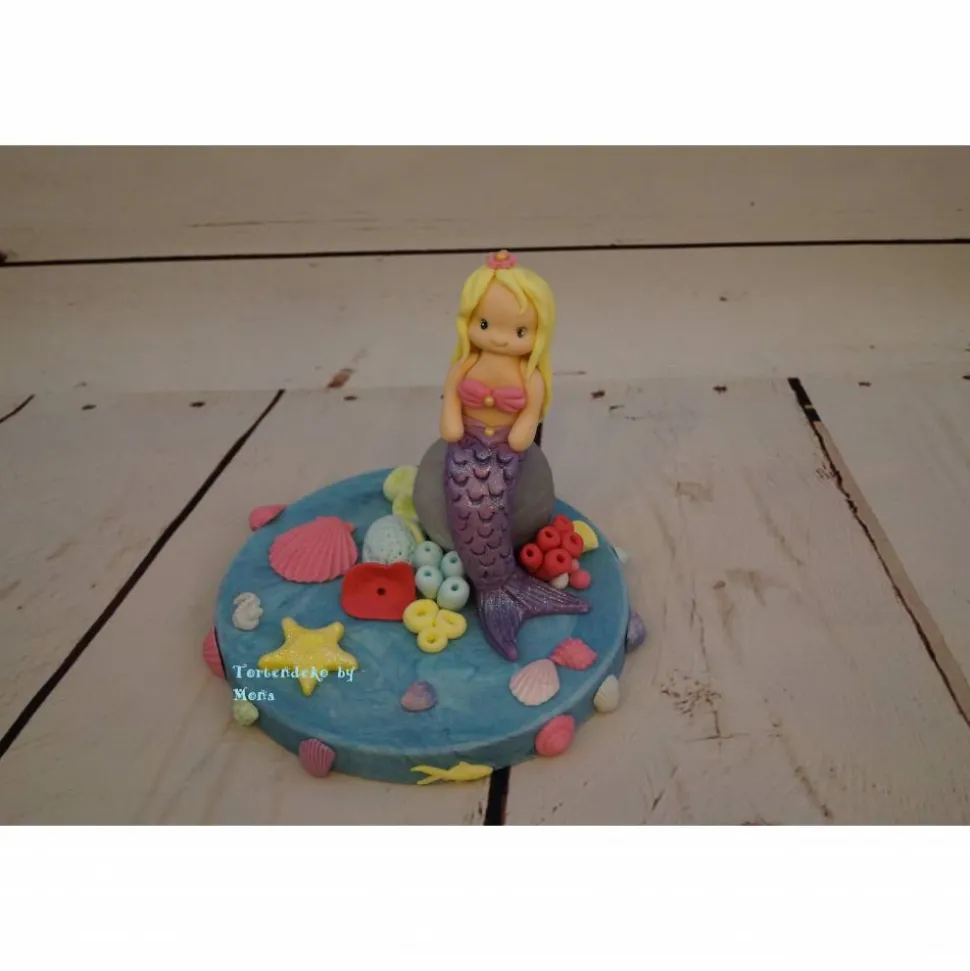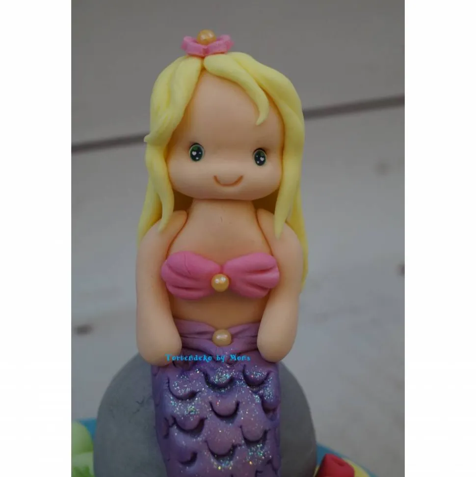 Eine Tortendeko für eine Meerjungfrauen Torte , da werden die kleine Mädchen große Augen machen und sich sehr drüber freuen, wenn diese Meerjungfrau auf ihre Torte sitzt. Sie können natürlich aus verschiedenen Varianten, Farben wählen. Sie können auch wählen, ob Sie auf den Topper sitzen soll oder nur auf den Stein. Durchmesser des Tortendummys ( Styropor) ist 20 cm.