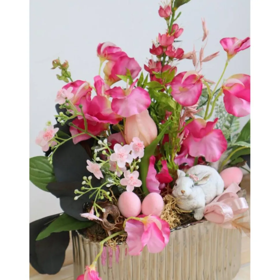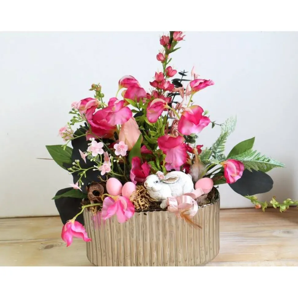 Material: Keramikschale, künstliche Blüten und Grün, Polyresinhase