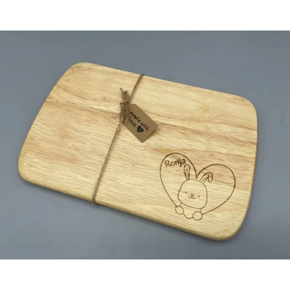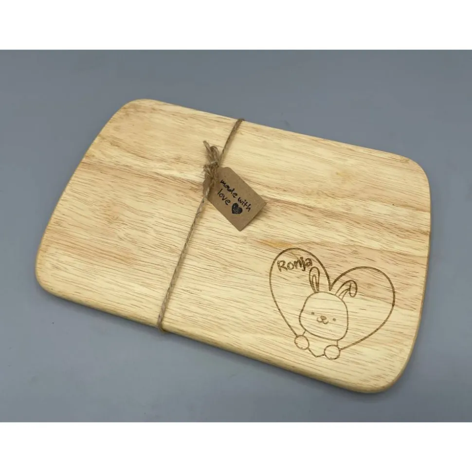 Da es sich um ein handgearbeitetes Naturprodukt handelt, kann die Optik von den Bildern abweichen. Farbe, Maserung und Gravurintensität sind von Brett zu Brett unterschiedlich.