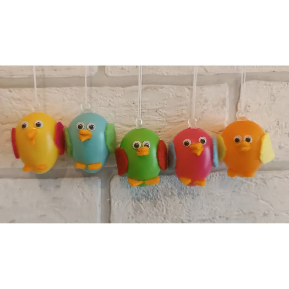 fünf Küken mit Kulleraugen (bunt) zum Aufhängen