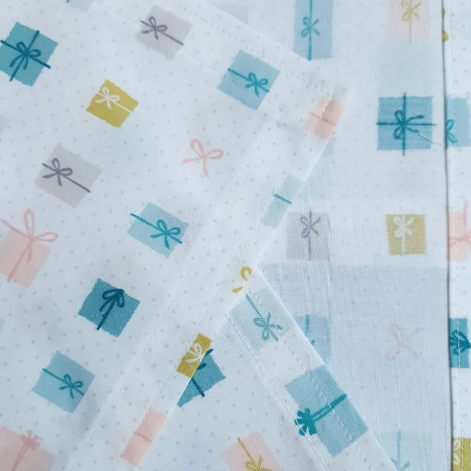 Bei dem Stoff aus 100% Baumwolle handelt sich um einen amerikanischen Designerstoff (AFG little Town). Er wurde vor der Verarbeitung gewaschen (40 Grad) und gebügelt (Stufe 2), um einlaufen des Furoshiki zu verhindern. (Ich empfehle Schonwäsche ohne Schleudern).