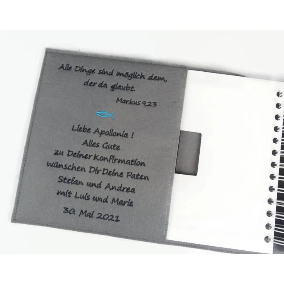 SET – Gästebuch/Fotoalbum mit passender Gesangbuchhülle (mit eingesticktem Namen) farblich passend zum Gästebuch.