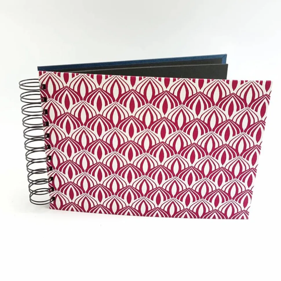 Gebunden ist das Album mit einem Drahtkamm, so kann es ganz flach aufgeschlagen werden.