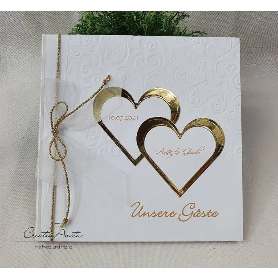 Das Buch beinhaltet 96 Blanko Seiten, auf denen Eure Gäste etwas schreiben, malen oder einkleben können.