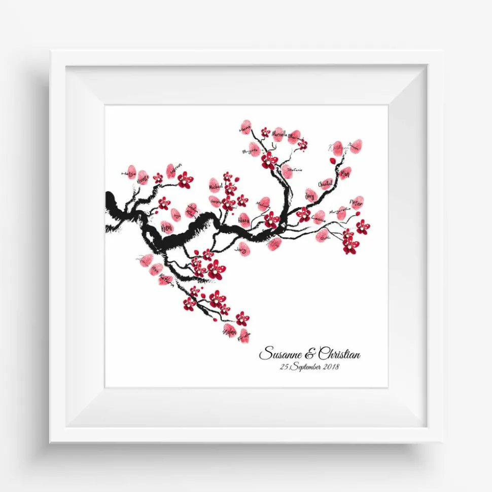 Die Gäste können mit Stempelkissen ihren Fingerabdruck auf der hochwertigen Leinwand hinterlassen und signieren. Ein einzigartiges und individuelles Hochzeitsgeschenk und Spaß auf der Hochzeitsfeier, welches noch lange in Erinnerung bleibt.