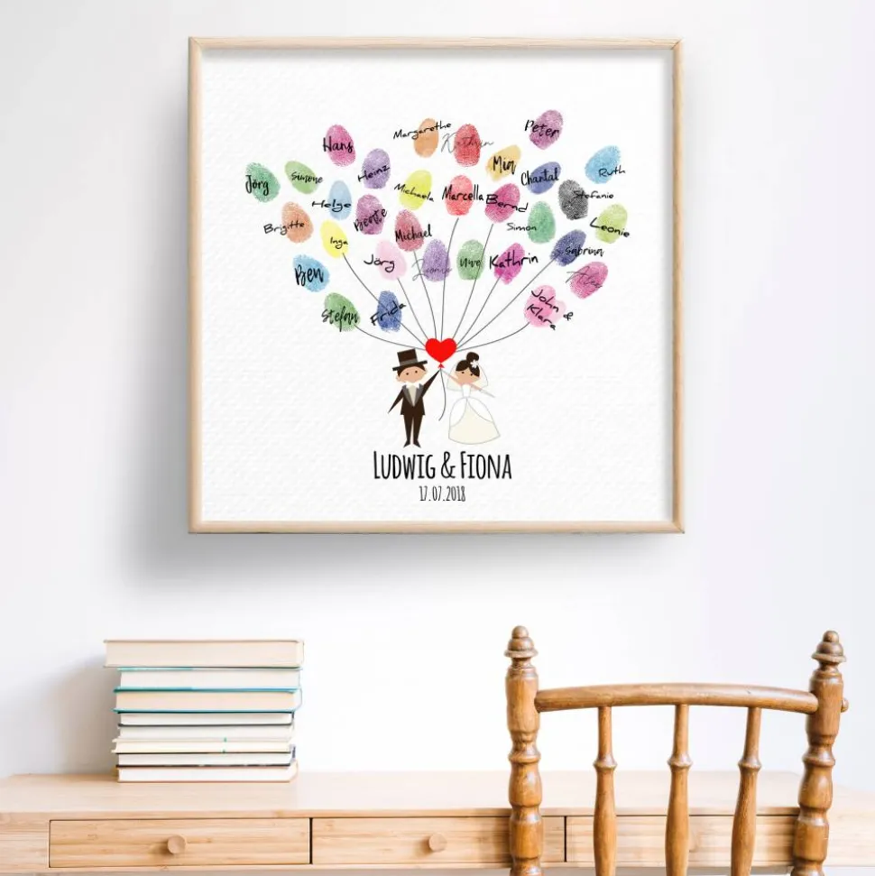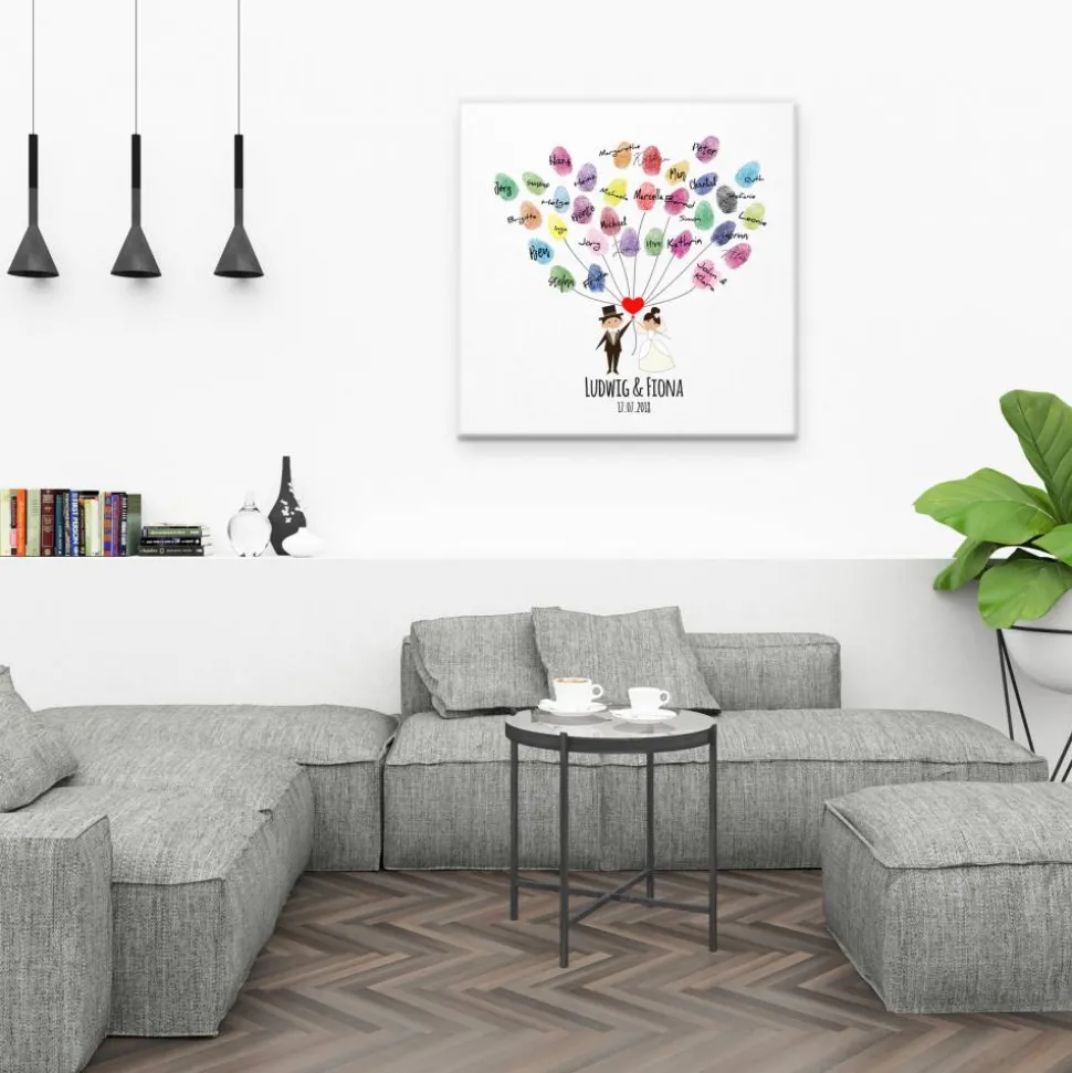 Gästebuch Hochzeit Fingerabdruck Leinwand Personalisiert Herz Luftballons Brautpaar Geschenk Hochzeitsdekoration Namen 50x50 cm Keilrahmen