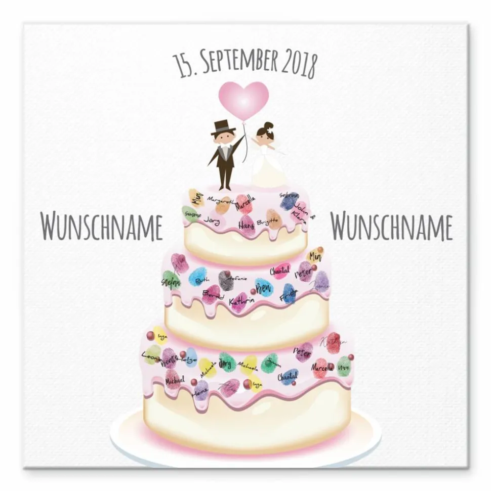 Gästebuch Hochzeit Fingerabdruck Leinwand Personalisiert Hochzeitstorte Brautpaar Geschenk Hochzeitsdekoration Namen 50x50 cm Keilrahmen