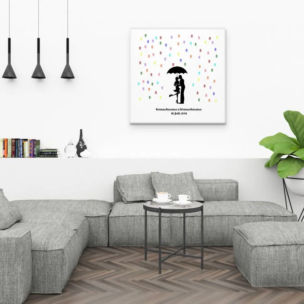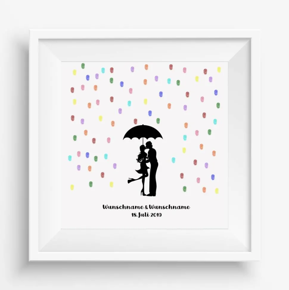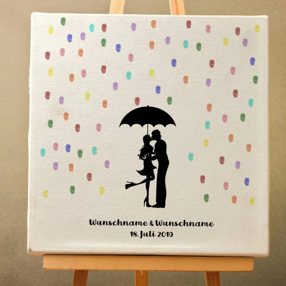 Gästebuch Hochzeit Fingerabdruck Leinwand Personalisiert Regentropfen Kuss Brautpaar Geschenk Hochzeitsdekoration Namen 50x50 cm Keilrahmen