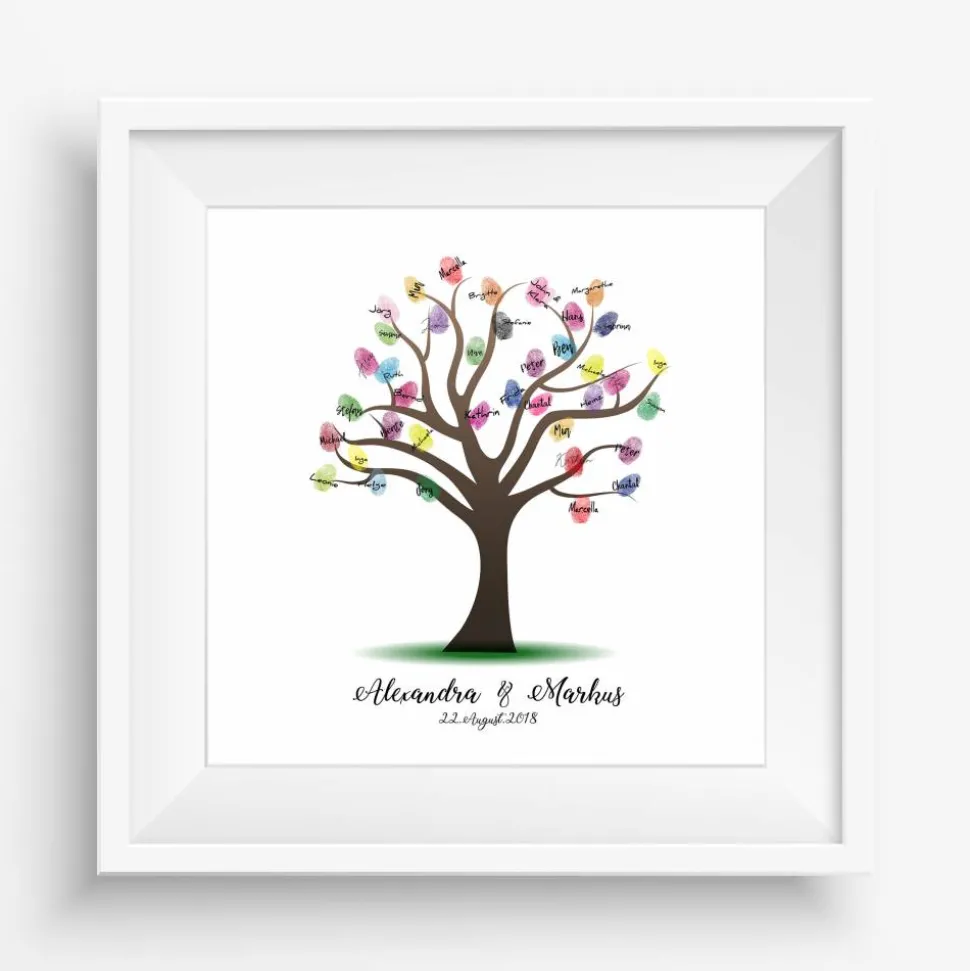 Jeder Gast kann mit einem Stempelkissen seinen Fingerabdruck auf der Leinwand hinterlassen und zusätzlich signieren. So entsteht ein wundervolles, einzigartiges Kunstwerk, das Braut und Bräutigam noch lange Freude bereitet. Die satten und langlebigen Farben sorgen dafür, dass die Erinnerung an diesen besonderen Tag lebendig bleibt.