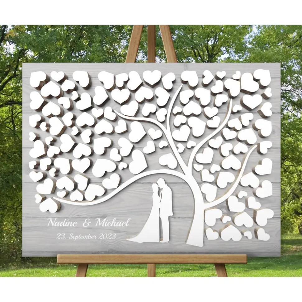 Gästebuch Hochzeit & Hochzeitsbaum auf Leinwand – Individuelles Hochzeitsgästebuch in Braun, Grau & Beige