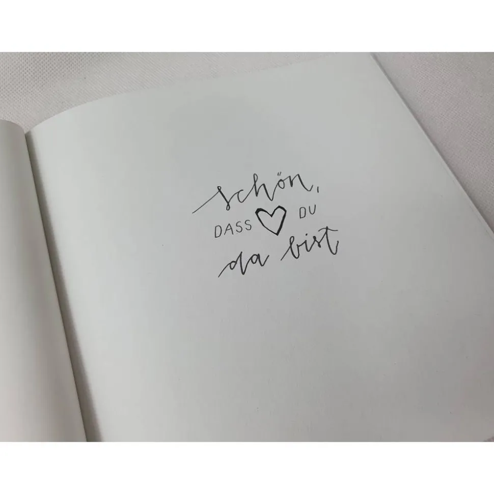 Das Buch beinhaltet 96 Blanko Seiten, auf denen Eure Gäste etwas schreiben, malen oder einkleben können.