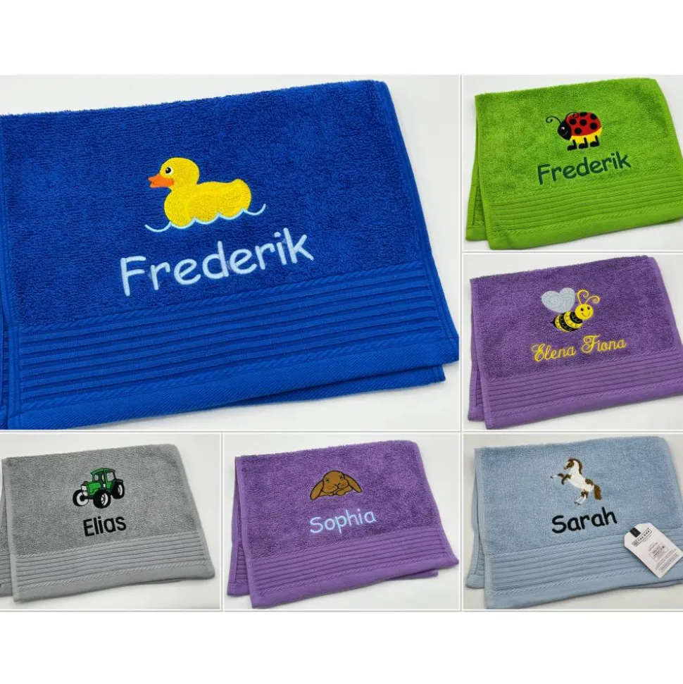 Gästehandtuchfarbe, Stickmotivnummer, Schriftart und Namen .