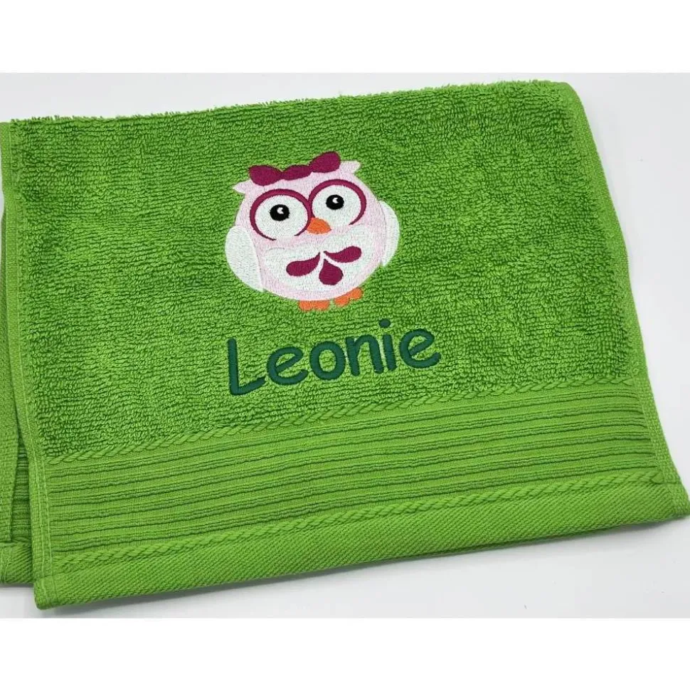 Gästehandtuchfarbe, Stickmotivnummer, Schriftart und Namen .