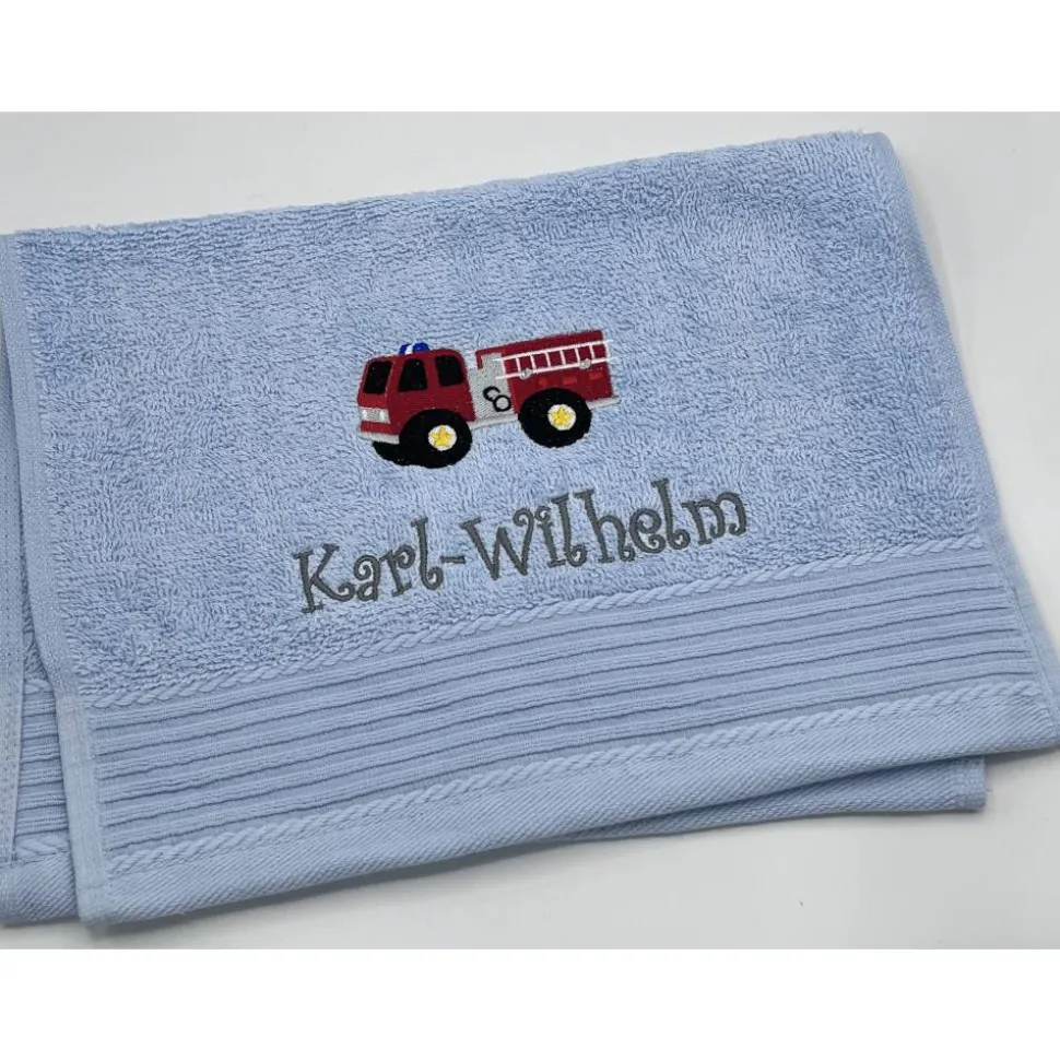 Gästehandtuchfarbe, Stickmotivnummer, Schriftart und Namen .