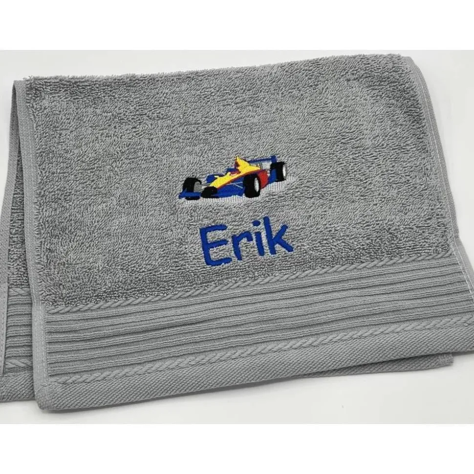 Gästehandtuchfarbe, Stickmotivnummer, Schriftart und Namen .