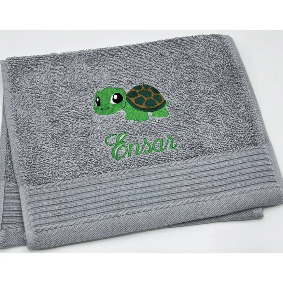 Gästehandtuchfarbe, Stickmotivnummer, Schriftart und Namen .