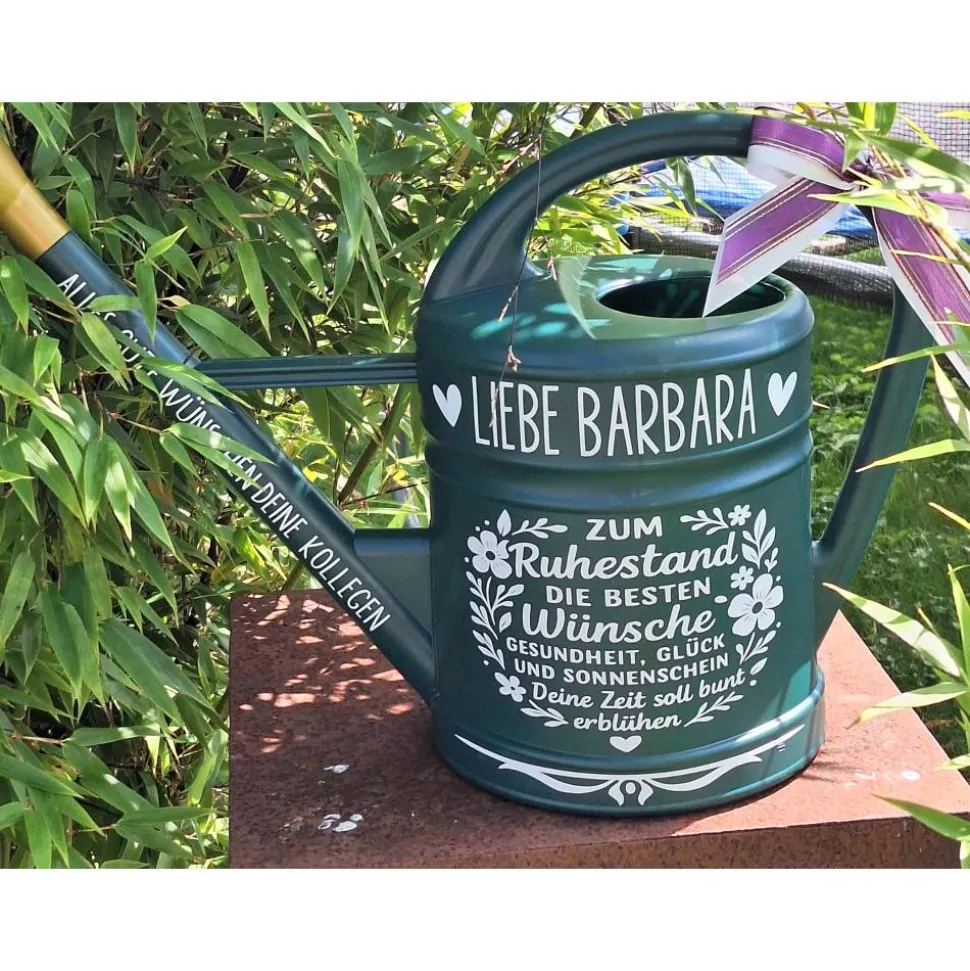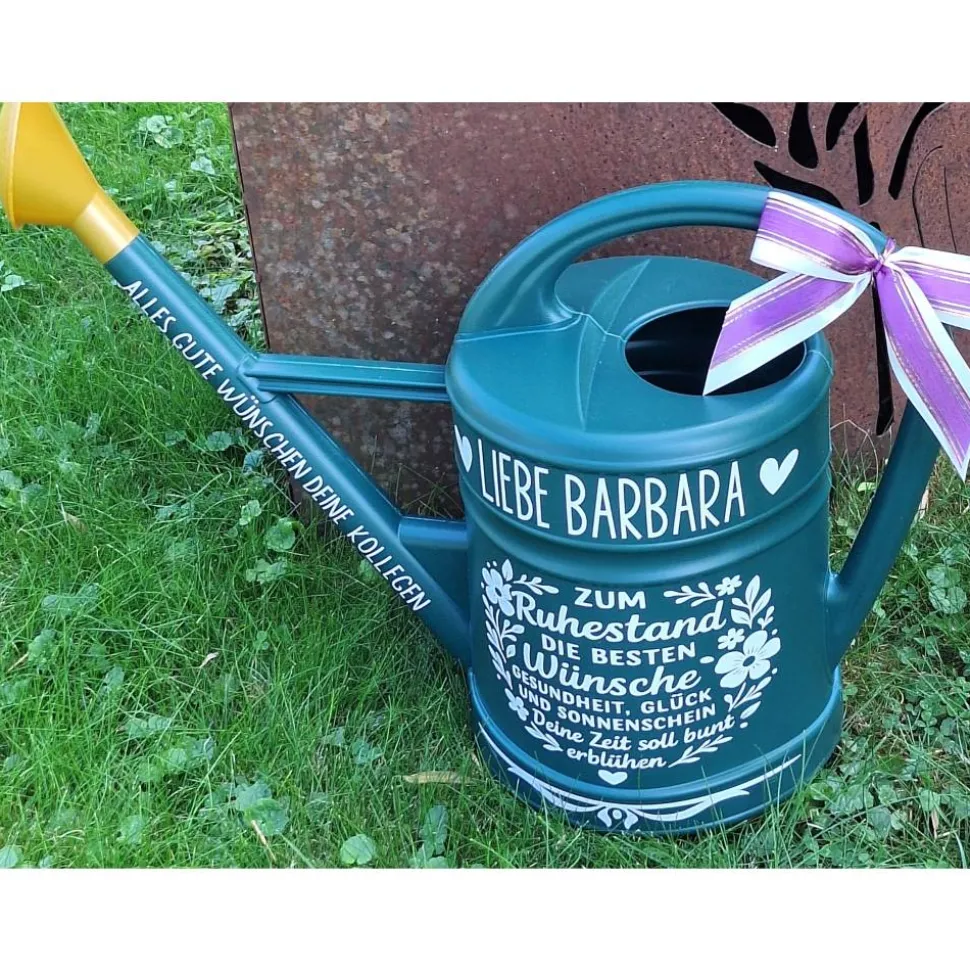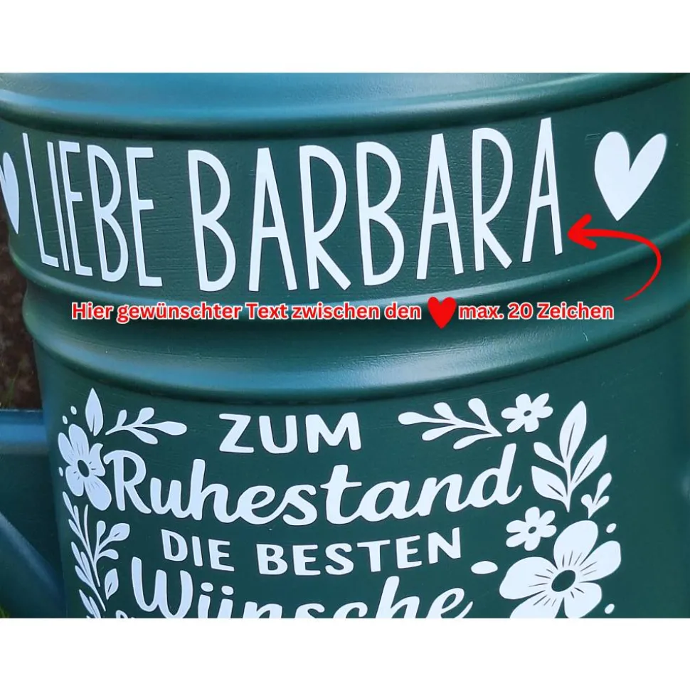 ❤ Liebe Barbara❤ Hier eigener Text zwischen den Herzen möglich (max. 20 Zeichen)Alle Gute wünschen deine Kollegen : Dein eigener Kannenhalstext (max. 40 Zeichen)