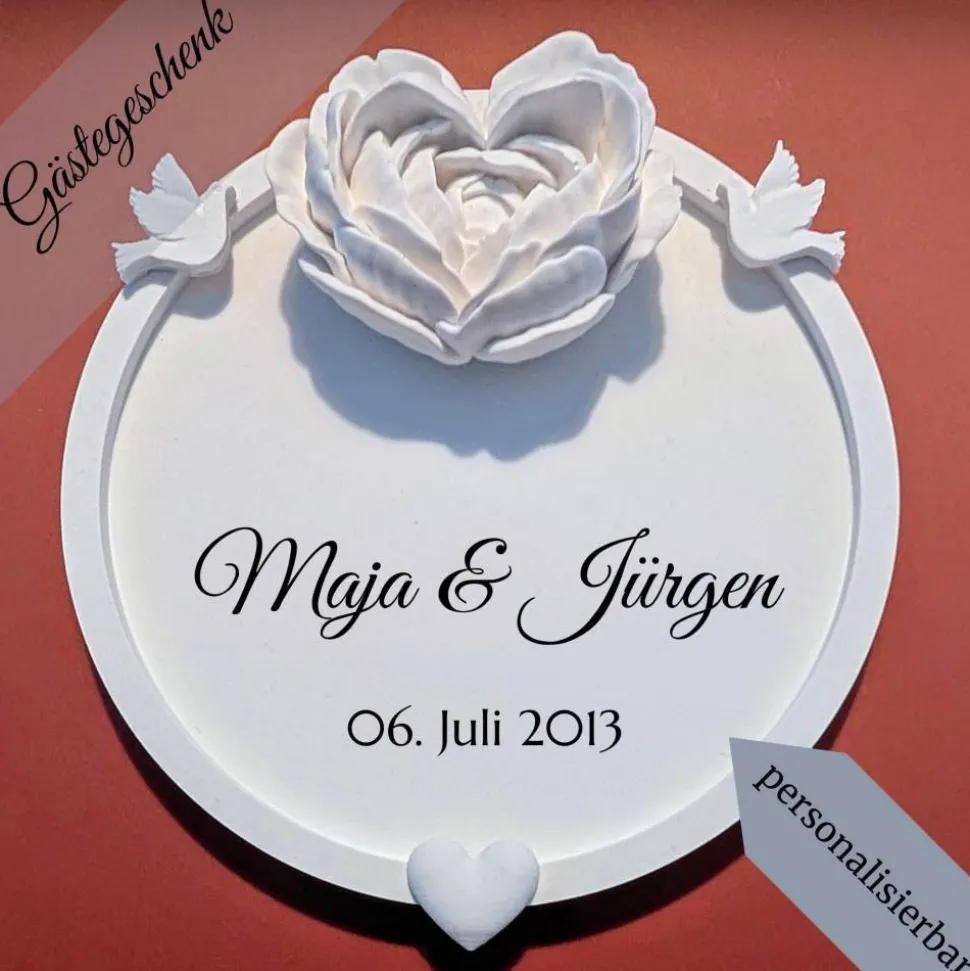 Gastgeschenk Hochzeit personalisiert – Deko mit Namen & Datum – Herz oder Rose – Geschenk für Hochzeitsgäste und liebevo