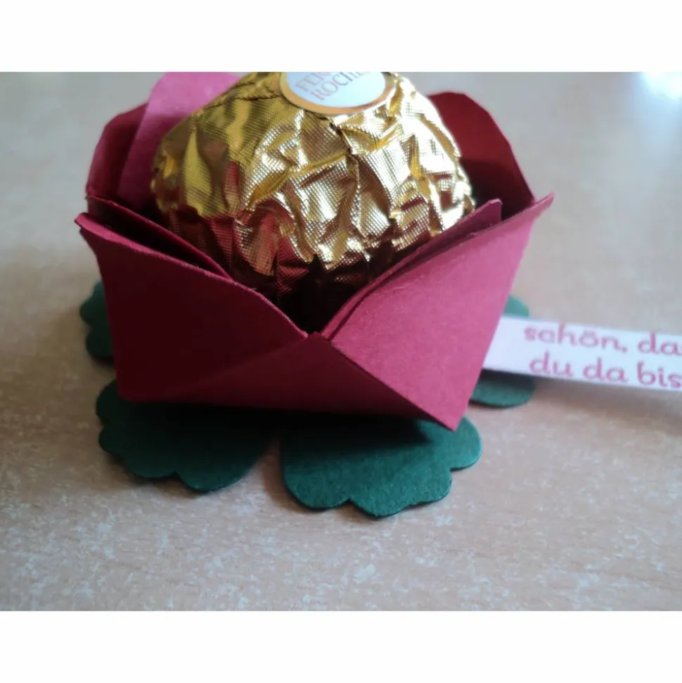 in der form einer Blume wurden von mir die Gastgeschenk/Gastgeschenke zur Hochzeit Taufe,Geburtstag Kommunion,Konfirmation gearbeitet…
