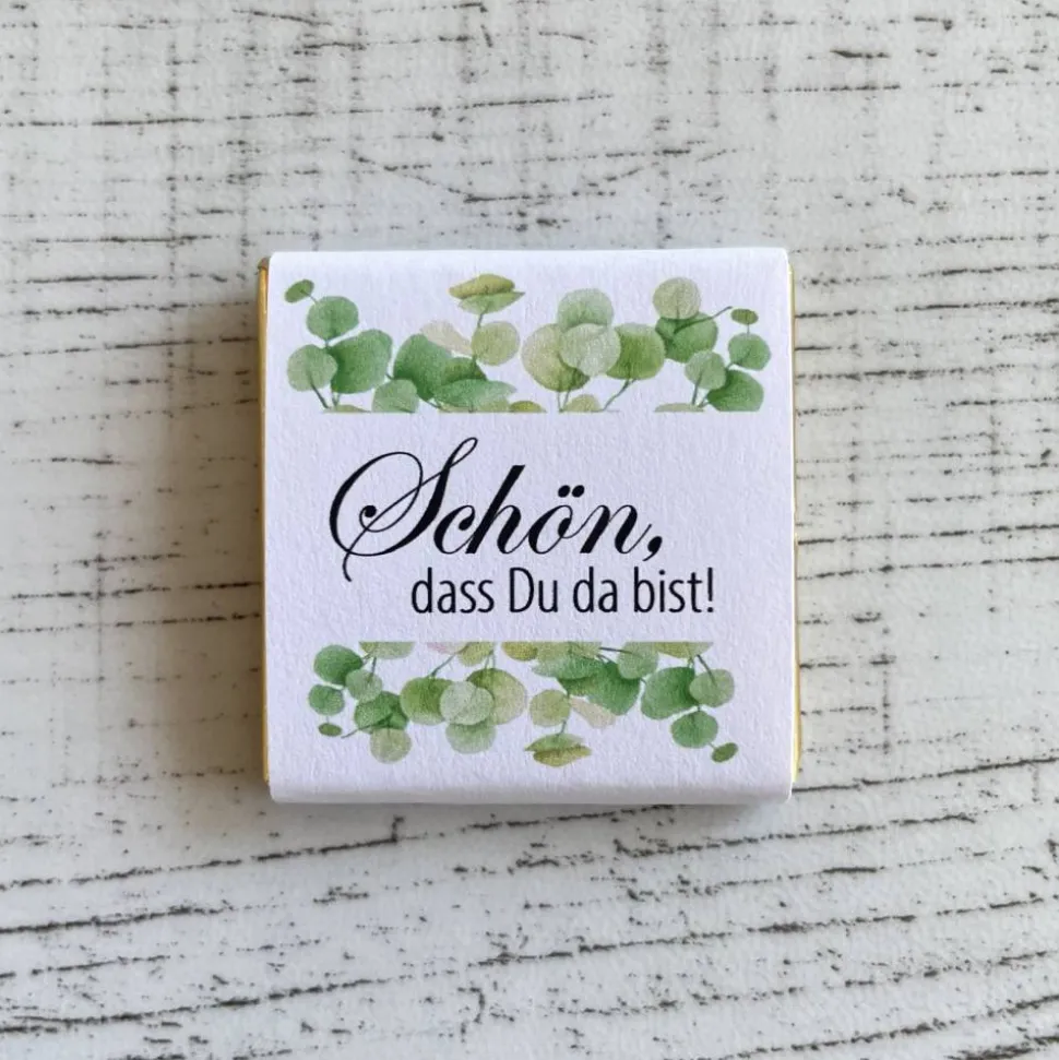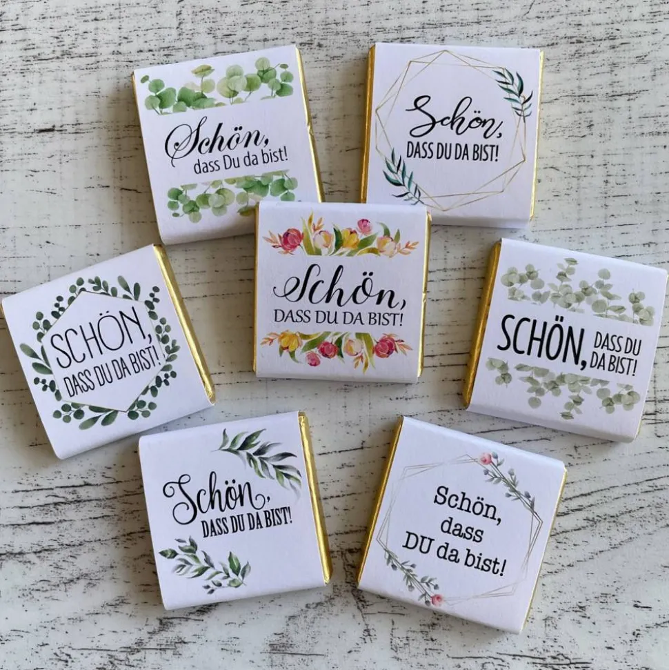 ♥ Geschmackssorten: Vollmilch, Zartbitter und Weiße Schokolade (Keine Sortenauswahl – die Täfelchen werden gemischt geliefert.)