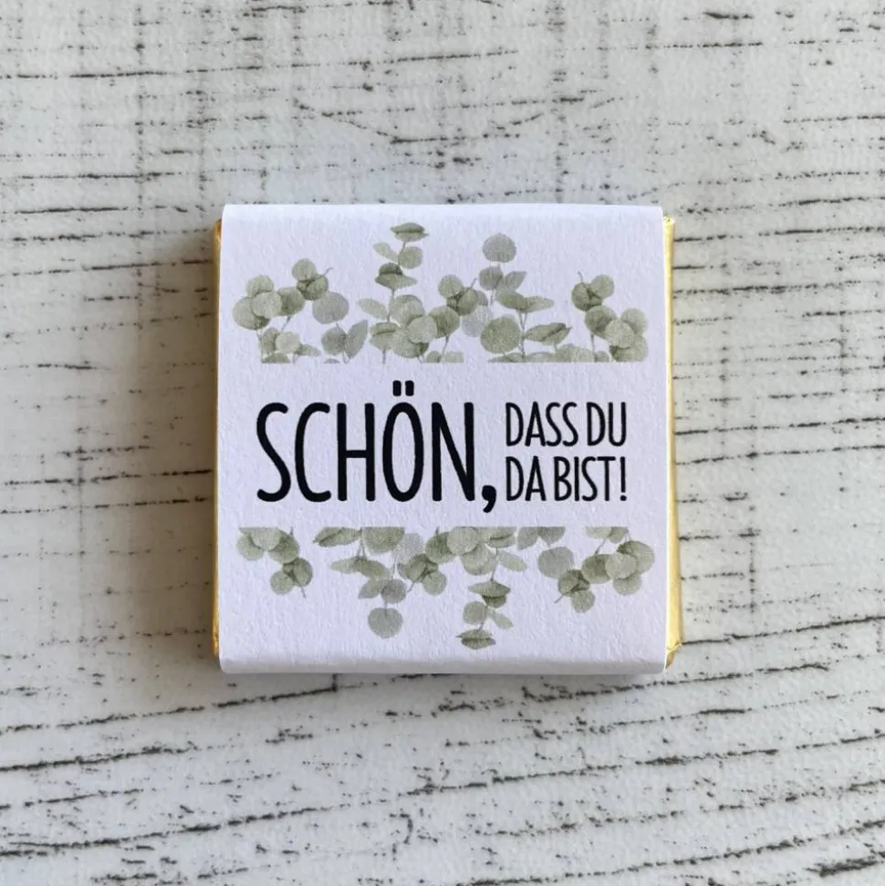 ♥ Geschmackssorten: Vollmilch, Zartbitter und Weiße Schokolade (Keine Sortenauswahl – die Täfelchen werden gemischt geliefert.)