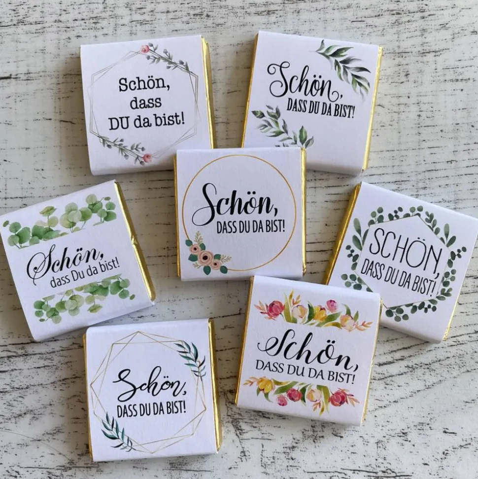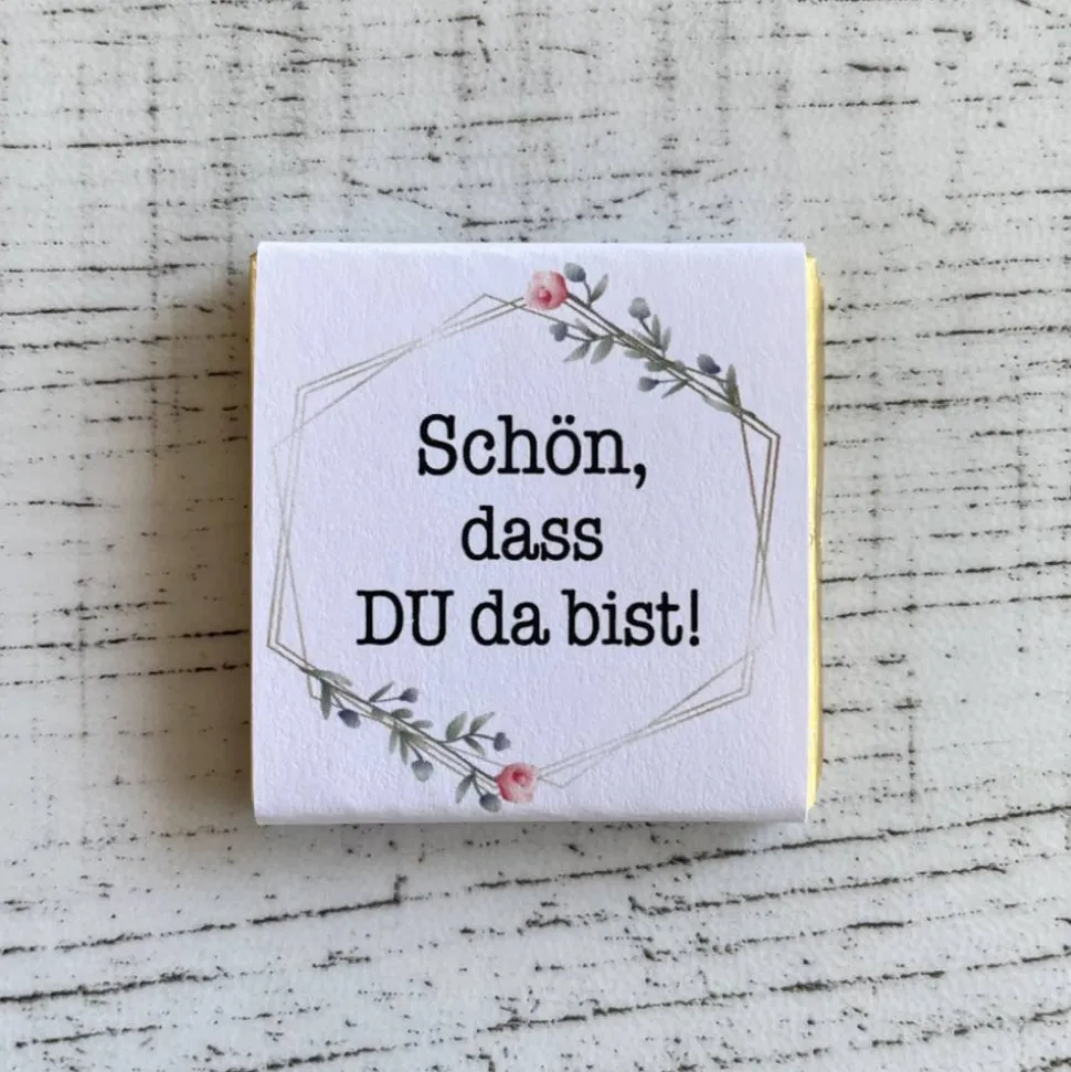 ♥ Geschmackssorten: Vollmilch, Zartbitter und Weiße Schokolade (Keine Sortenauswahl – die Täfelchen werden gemischt geliefert.)