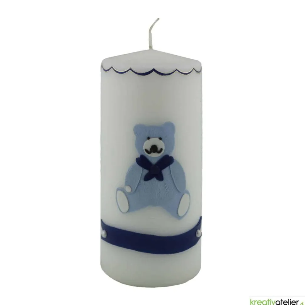 Diese handgefertigte Geburtskerze trägt eine tiefe symbolische Bedeutung. Das Licht der Kerze steht für das neue Leben und die Hoffnung, die das Kind in die Welt bringt. Der hellblaue Bär symbolisiert Geborgenheit, Schutz und die kindliche Unschuld, die mit der Geburt eines Babys verbunden sind. Die zarten Verzierungen in Blau verleihen der Kerze eine friedliche und beruhigende Ausstrahlung, die den Wunsch nach einem behüteten Lebensweg für das Kind zum Ausdruck bringt.