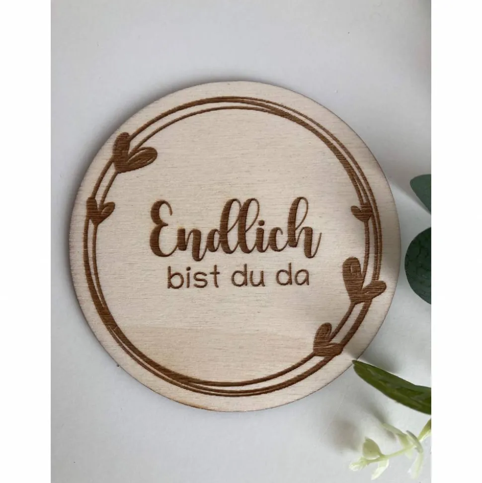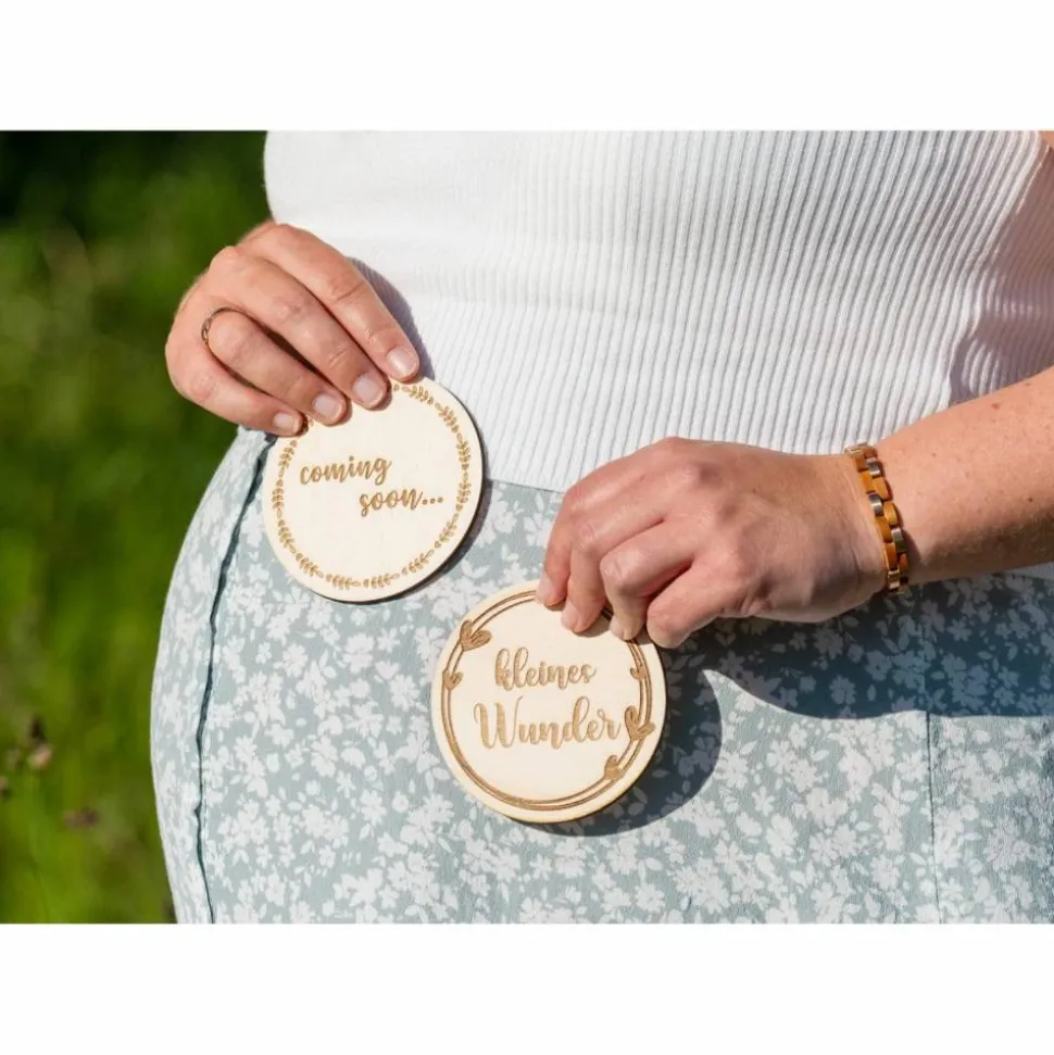 Geburtsscheibe Holzscheibe Kleines Wunder / Endlich bist du da / Coming Soon Babyscheibe für Fotoshooting