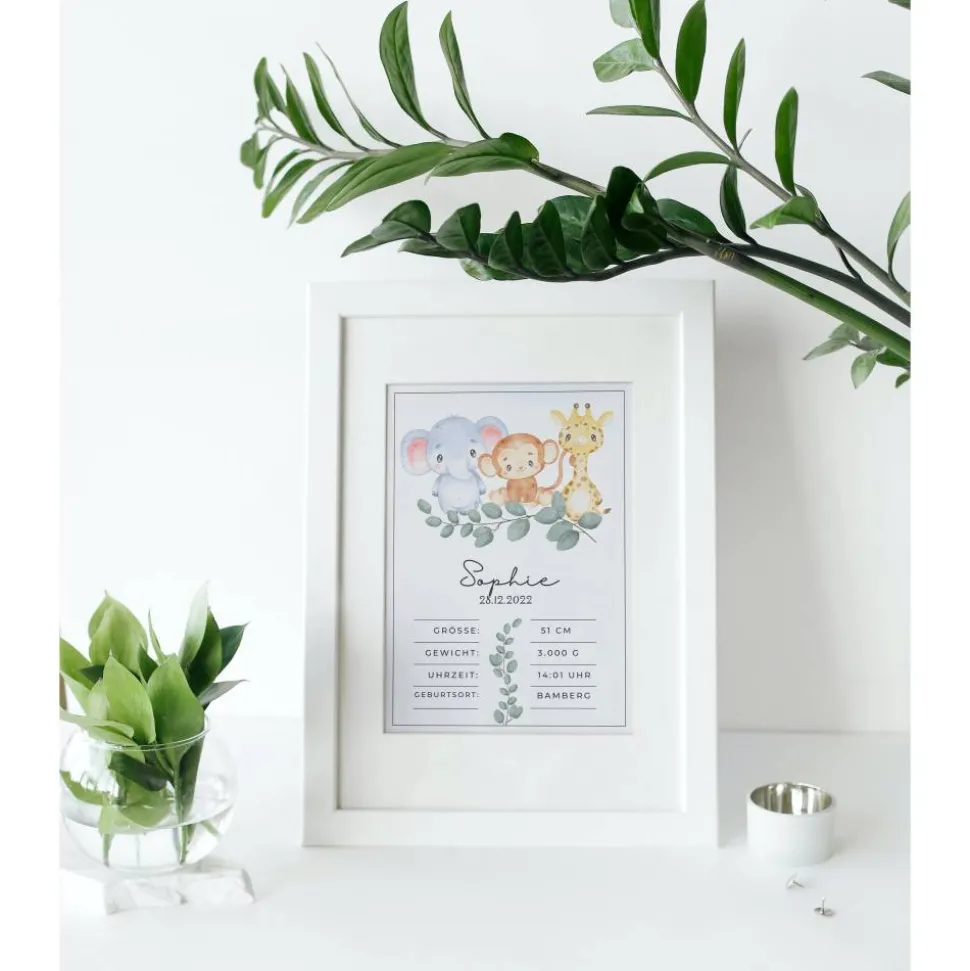 Geburtstafel Tiere Elefant | Geburtsdaten Poster Wild Ones | Geburtsposter | Geburtsanzeige | Geburtsbild | personalisie