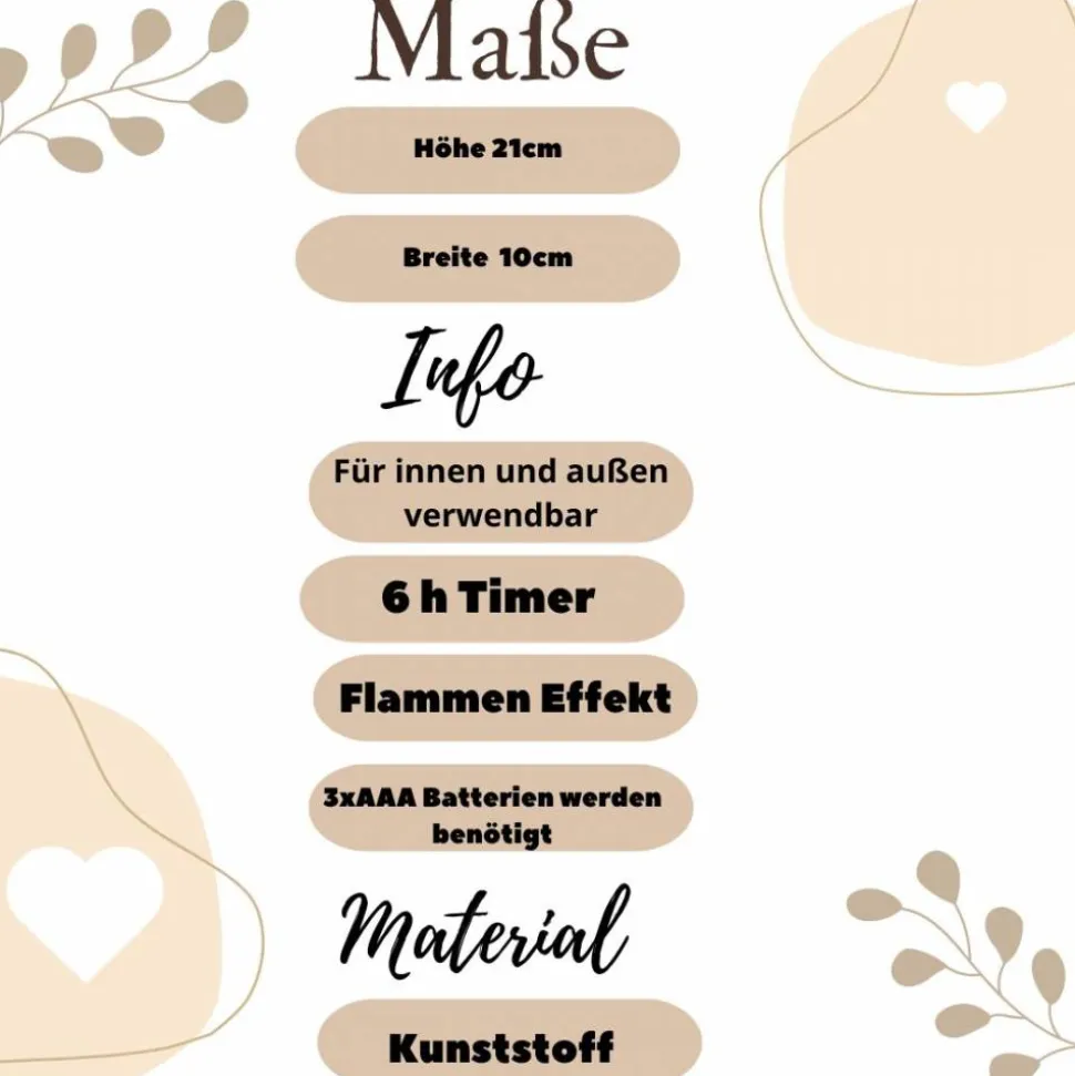 Die Led Laterne hat 4 Seiten. Auf die Tür (vorne) kann ein Name. Auf den anderen 3 Seiten sind 3 Motive. 2X Blumen 1x Spruch