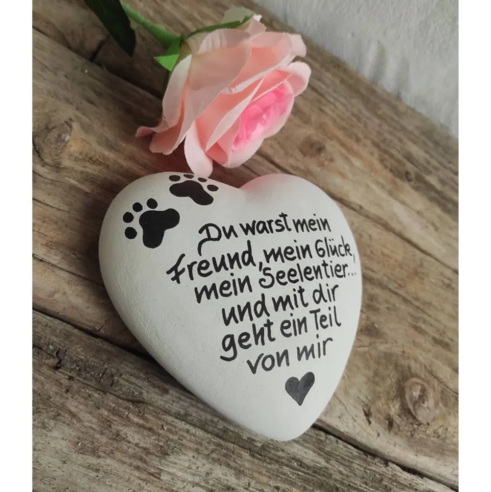 Mit folgendem Text. Du warst mein Freund, mein Glück, mein Seelentier ….und mit dir geht ein Teil von mir. Zusätzlich schreibe ich noch einen Namen dazu, nur den namen, kein Datum