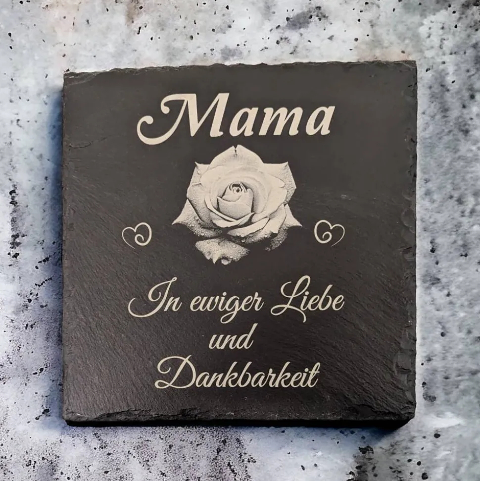 Diese Schieferplatte ist 20cmx20cm und wird graviert. Versiegelt mit einer Schutzschicht.