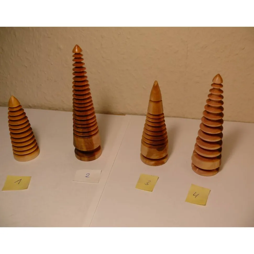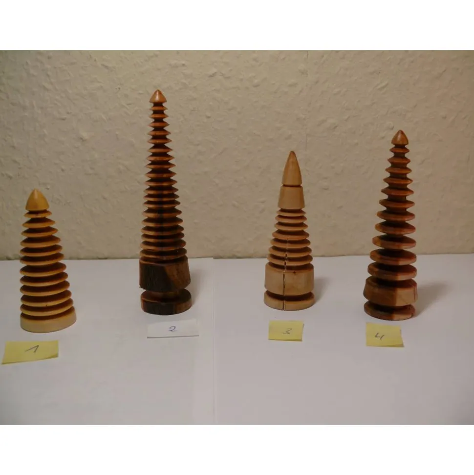 Von Hand gedrechselte Bäumchen, bestehend aus verschiedenen Holzarten.