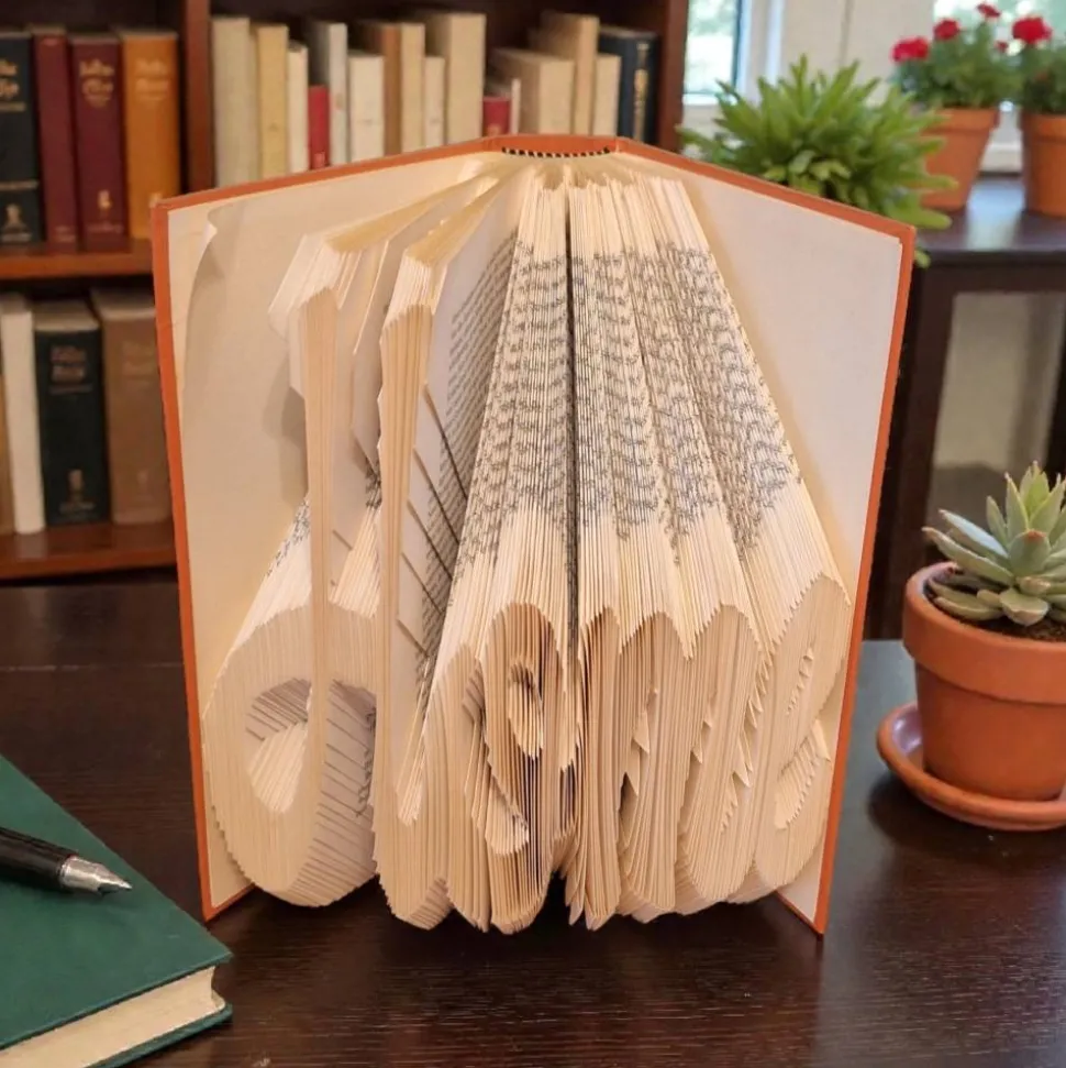 Aus alten Büchern entsteht bei mir etwas völlig Neues: kunstvoll handgefaltete Motive. Jedes Stück ist ein Unikat und wird in liebevoller Handarbeit gefertigt. Durch das Upcycling der Bücher bekommen sie ein zweites Leben als dekoratives Highlight für Zuhause oder als besonderes Geschenk.