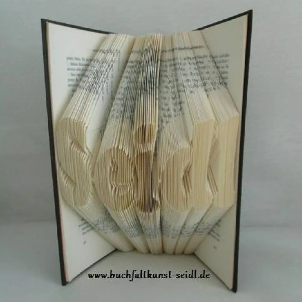 Durch das Umfalten der Seitenecken an einer bestimmten Stelle und in einem bestimmten Winkel entstehen dreidimensionale Bilder und Wörter. Das Faszinierende ist, dass dabei nichts geschnitten wird! Jedes Motiv fertige ich in liebevoller und präziser Handarbeit durch ca. 300-400 „Eselsohren“ an.