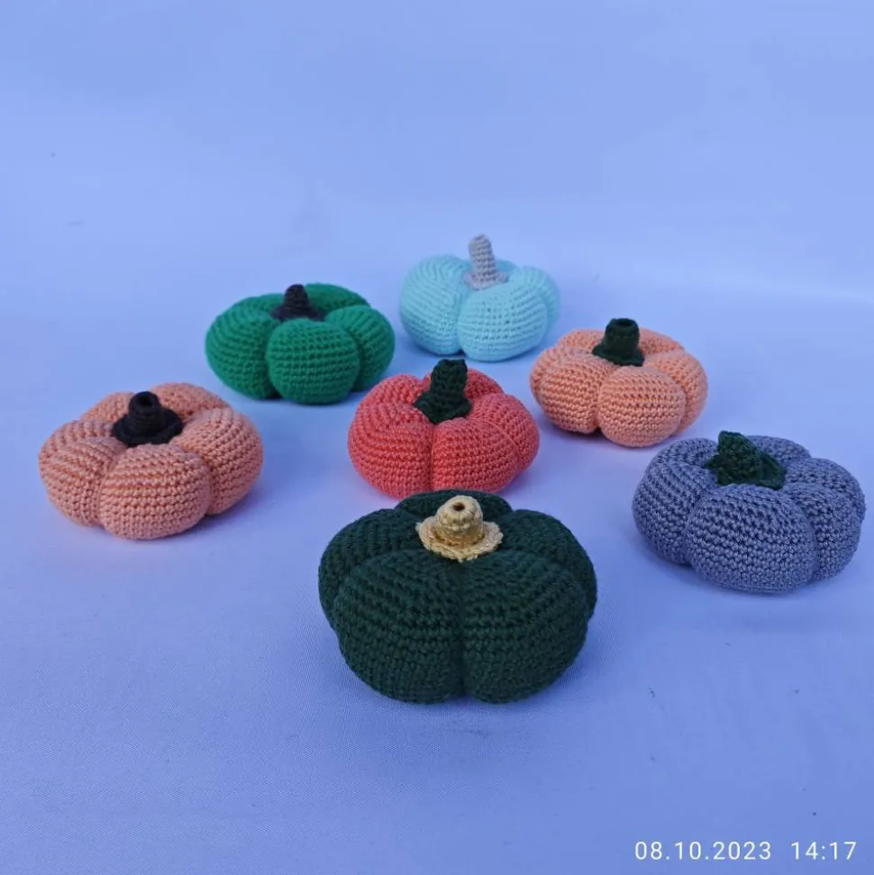 jeder Kürbis wurde sorgfältig von Hand gehäkelt, aus 100 % Baumwolle und mit Bastelwatte in Form gebracht, die Größen variieren etwas, was bei Handarbeit total „normal“ ist