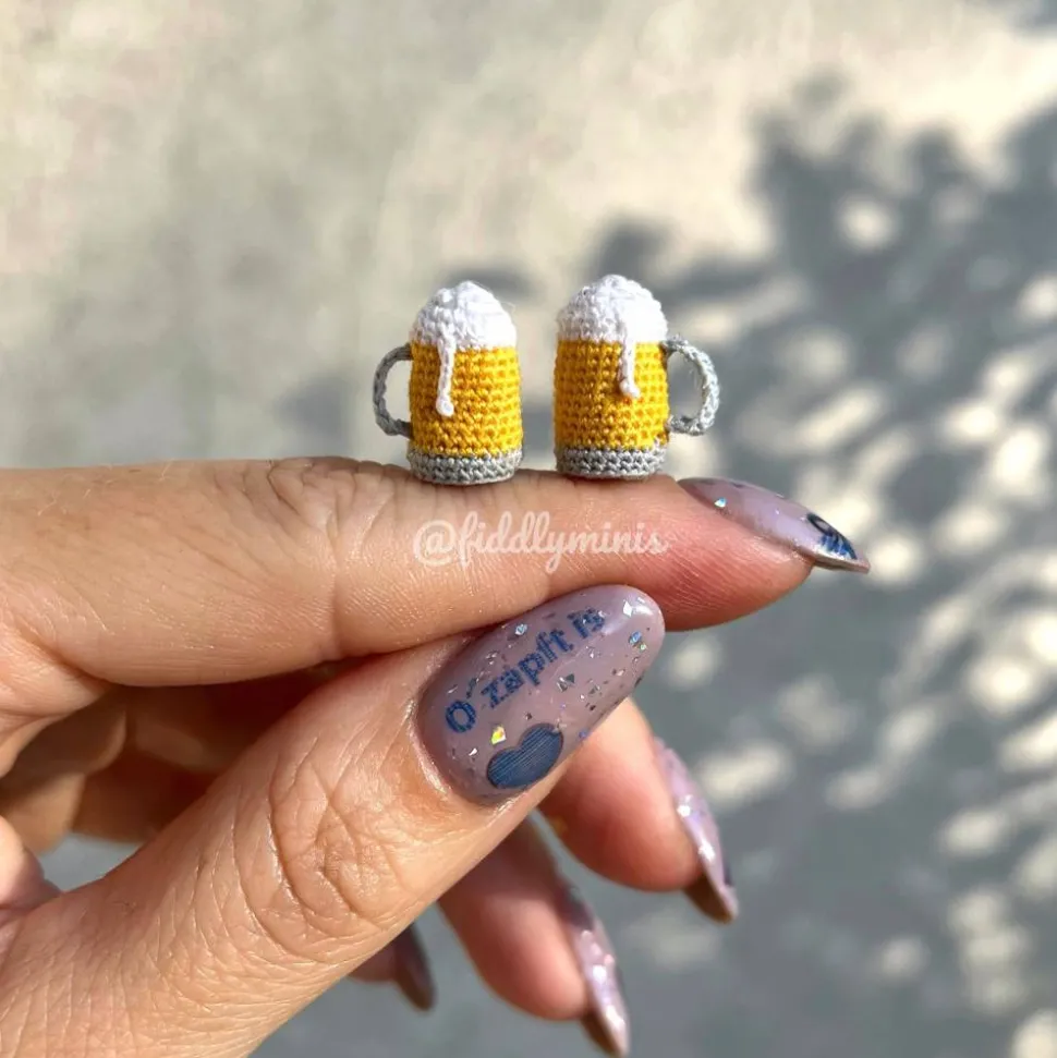Diese mikrogehäkelten Bierkrug/Brezel-Ohranhänger sind das perfekte Accessoire für besondere Anlässe wie das Oktoberfest. Jedes Stück ist ein Unikat und wurde mit Liebe zum Detail gefertigt. Diese winzigen Kunstwerke sind nicht nur perfekte Geschenke für Bierliebhaber und Oktoberfest-Enthusiasten, sondern auch eine einzigartige Ergänzung für Miniaturwelten und Szenen.