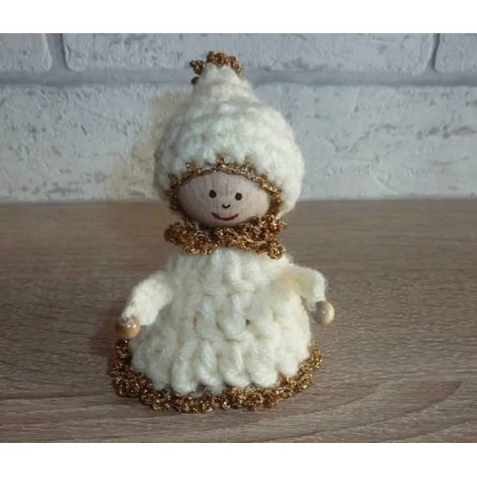 gehäkelter Wichtel - wollweiß-gold (9 cm x 6 cm)