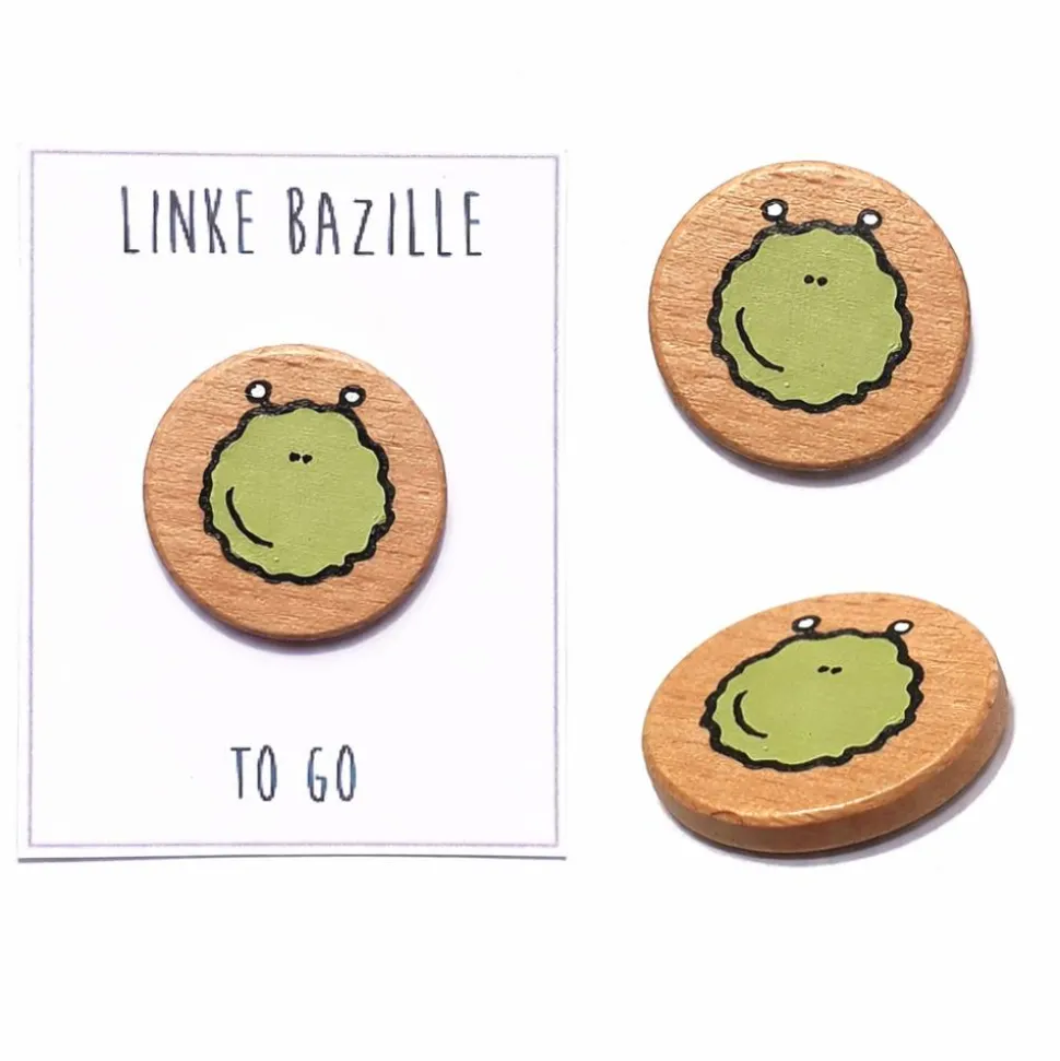 Das Holzscheibchen ist mit einem kleinen Klebepunkt auf der Spruchkarte fixiert – hält, kann aber ganz easy abgezogen werden.