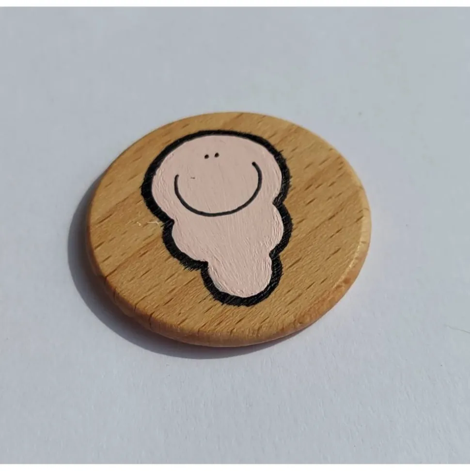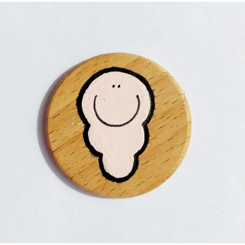 Du bekommst ein bemaltes Holzscheibchen, fixiert mit einem kleinen Klebepunkt zum leichten Ablösen auf einer stabilen Spruchkarte (300g).