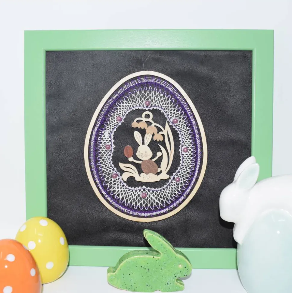 Bringe österliche Freude in dein Zuhause! Das geklöppelte Fensterbild Osterfreude begeistert mit liebevoller Handarbeit und einem einzigartigen Design. Im Holzrahmen mit passendem Holzinnenteil setzt du einen besonderen Akzent an jedem Fenster.