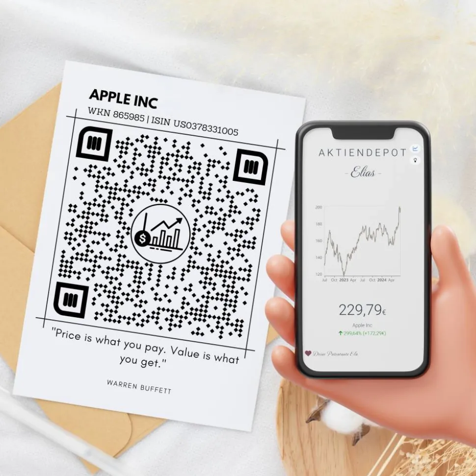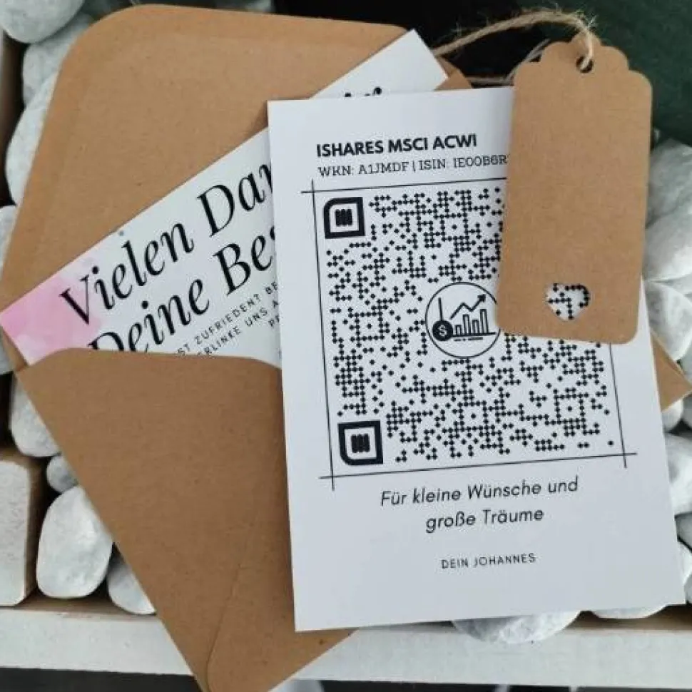 ❤️️ Du möchtest deinem Patenkind, Enkelkind, oder deinen Kindern eine Aktie, Etf, Kryptowährung schenken? Und bist noch auf der Suche nach einer schönen Verpackung? Dann ist diese QrCode Geschenkkarte perfekt.