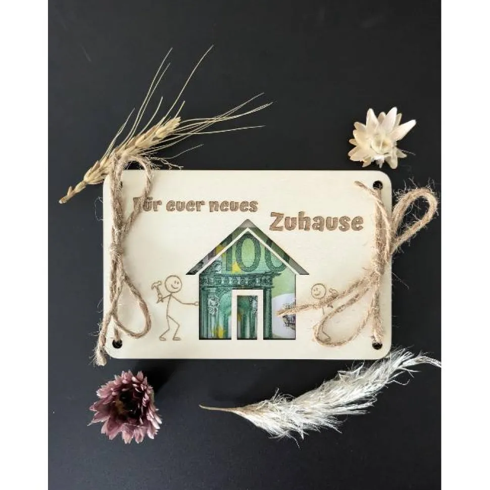 Geldgeschenk aus Holz, Einzugsgeschenk, Einzug, Auszug, Geldverpackung, Wunscherfüller
