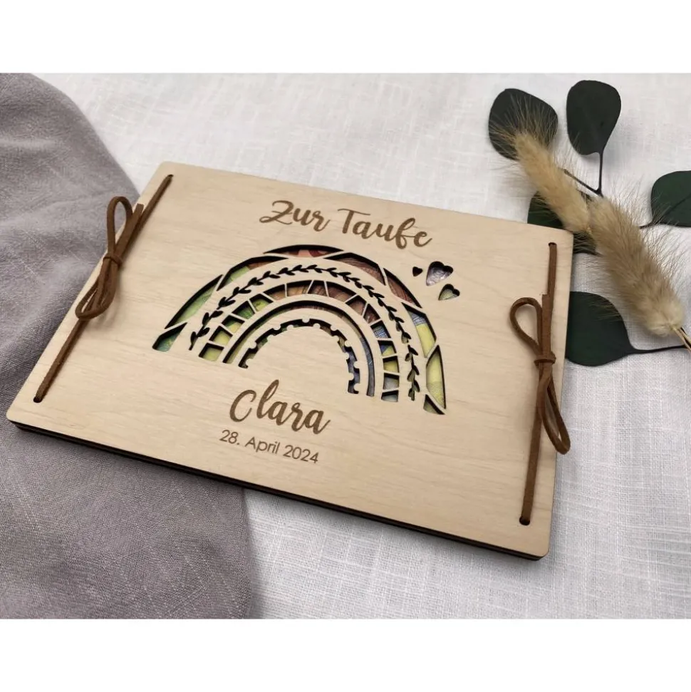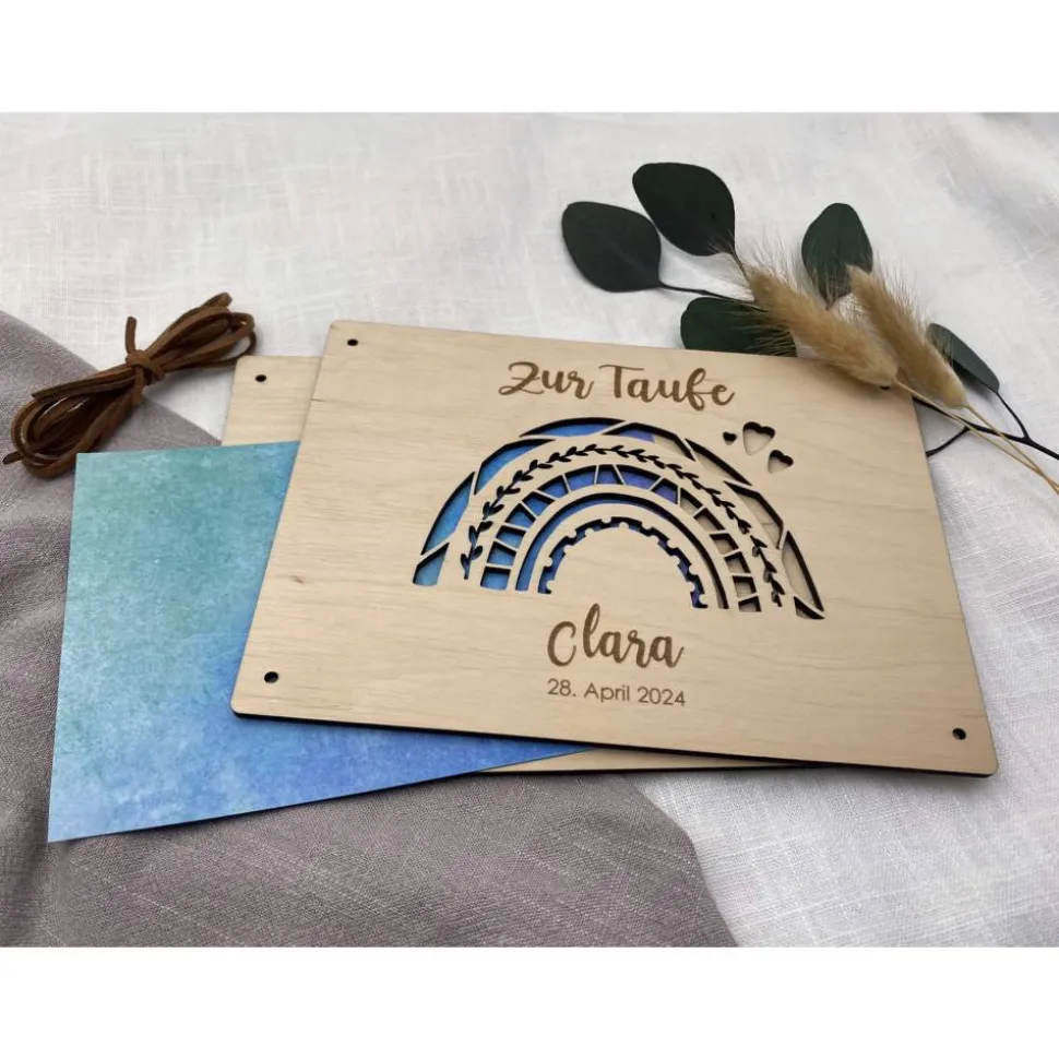 Für das Geldgeschenk nutzen wir 100% FSC zertifiziertes Pappelsperrholz, welches 3mm dick ist und wird inklusive Kunstlederband zum zubinden geliefert.