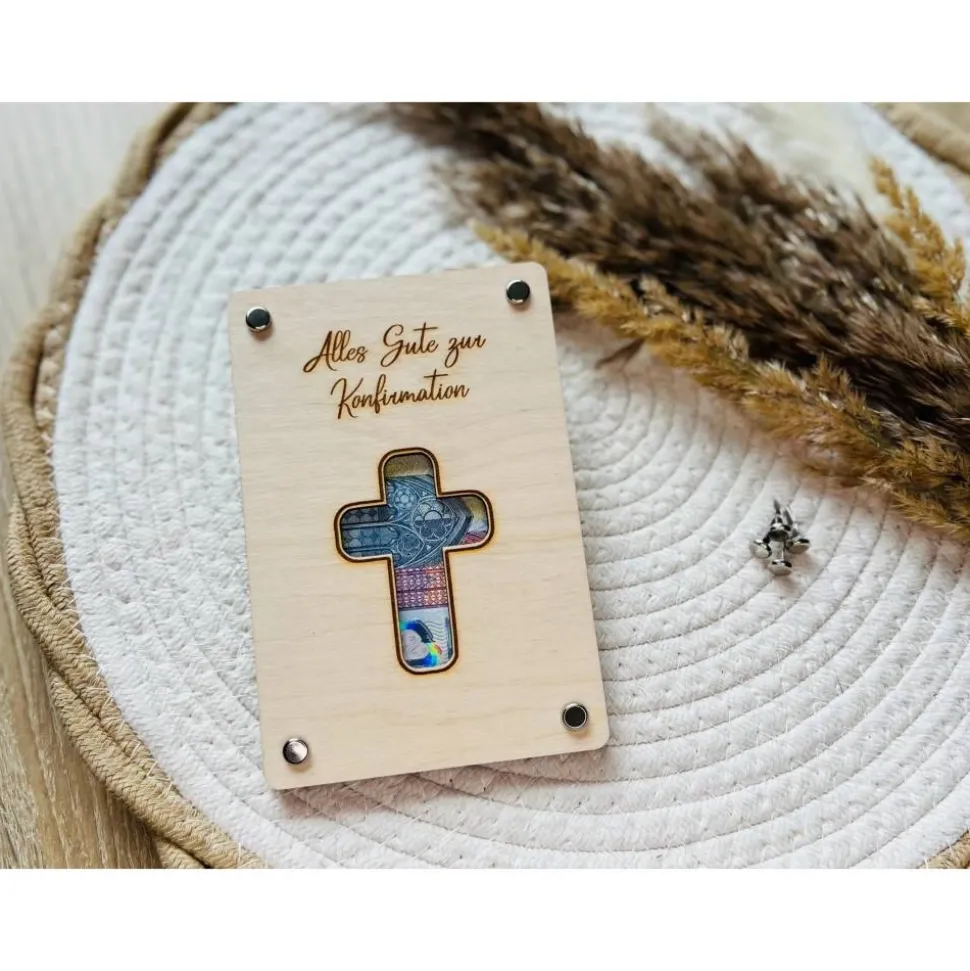 Geldgeschenk aus Holz, Wunscherfüller, Geschenkverpackung, Taufe, Konfirmation, Kommunion, personalisierbar