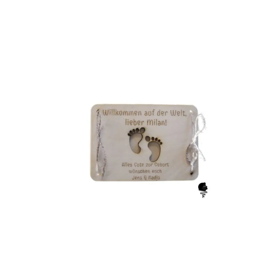 Beide Holzkarten sind mit jeweils vier Löchern versehen, um die Karten mit einem Band zusammen zu binden. Das Band ist natürlich im Lieferumfang enthalten.